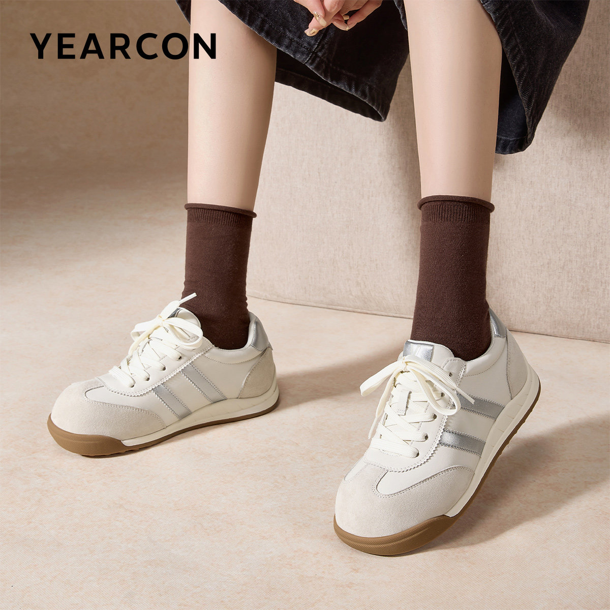 Chio2nd南风 4cm增高磨砂牛皮德训鞋子女款秋冬复古休闲鞋运动鞋