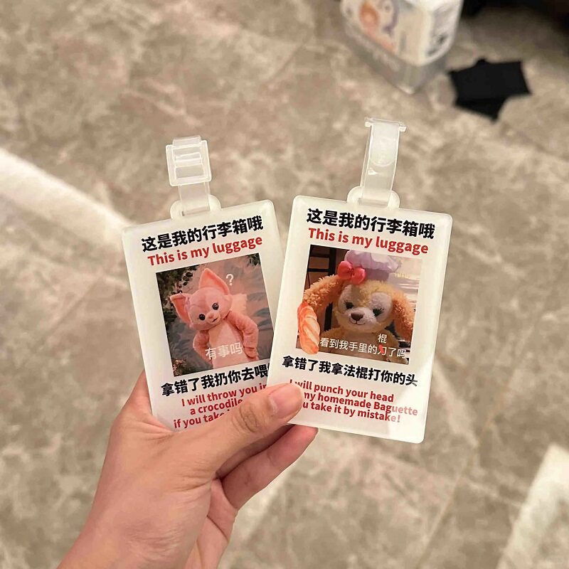 可爱防丢失行李牌贴纸旅行箱标识牌登机挂牌玲娜贝儿饼饼书包挂件