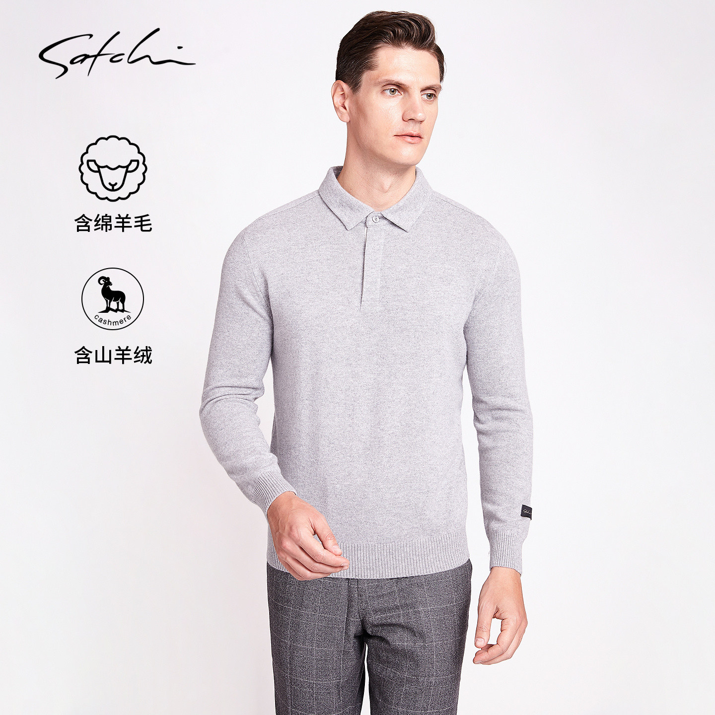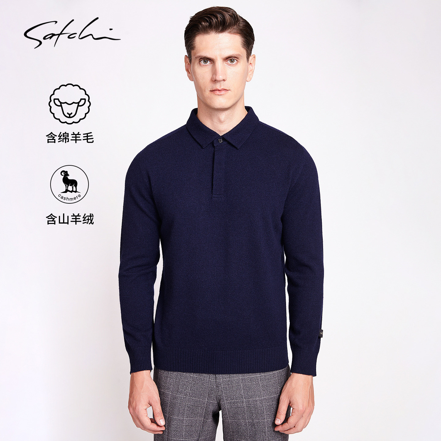 SATCHI沙驰男装男士针织POLO羊绒衫冬季新款商务休闲保暖翻领毛衣