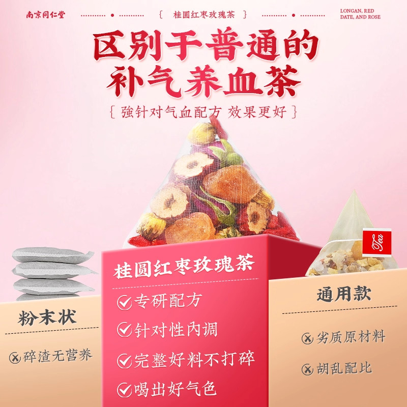 同仁堂红枣桂圆枸杞玫瑰花茶补气养血女人美容养颜调理气血养生茶