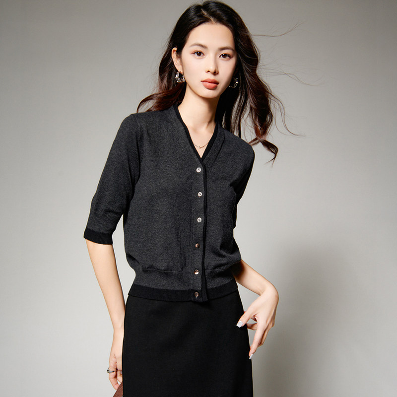 减龄V领,高弹力,含羊毛,纹理清晰