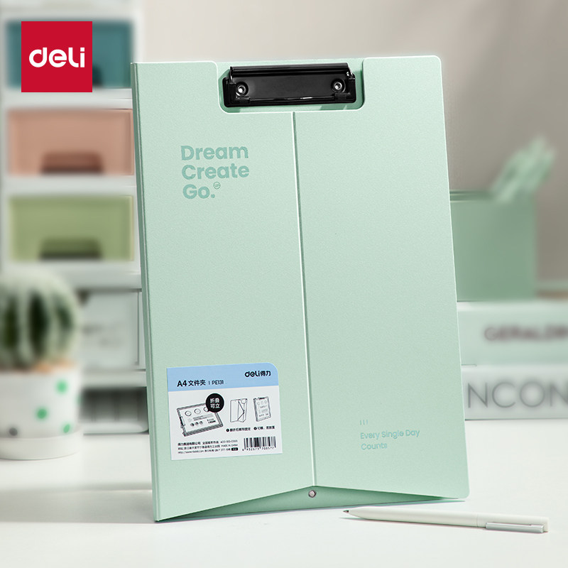 得力文件夹a4资料夹可立式板夹办公用品写字垫板档案夹加厚夹板写字板a4纸收纳夹横竖可用硬板夹可折叠高颜值