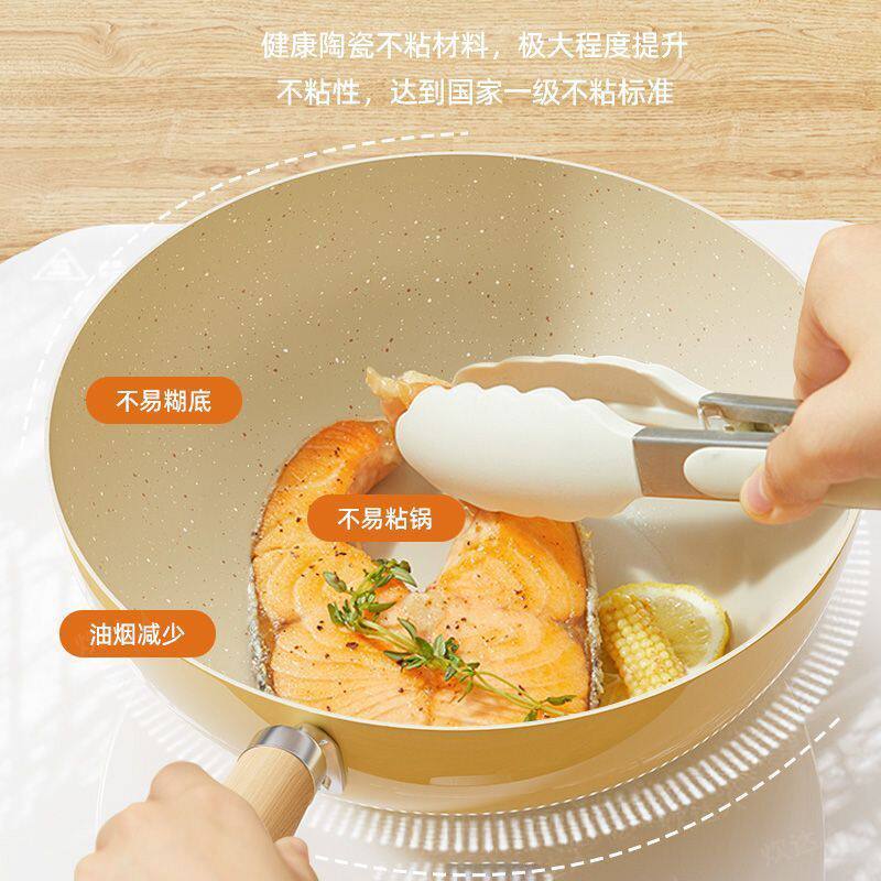 爱仕达无氟涂层不粘锅炒锅家用陶瓷不沾锅燃气电磁炉用钛锅炒菜锅