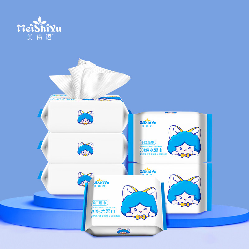 大包80抽纯水湿巾纸婴儿手口专研新生宝宝湿纸巾家庭用实惠装加大