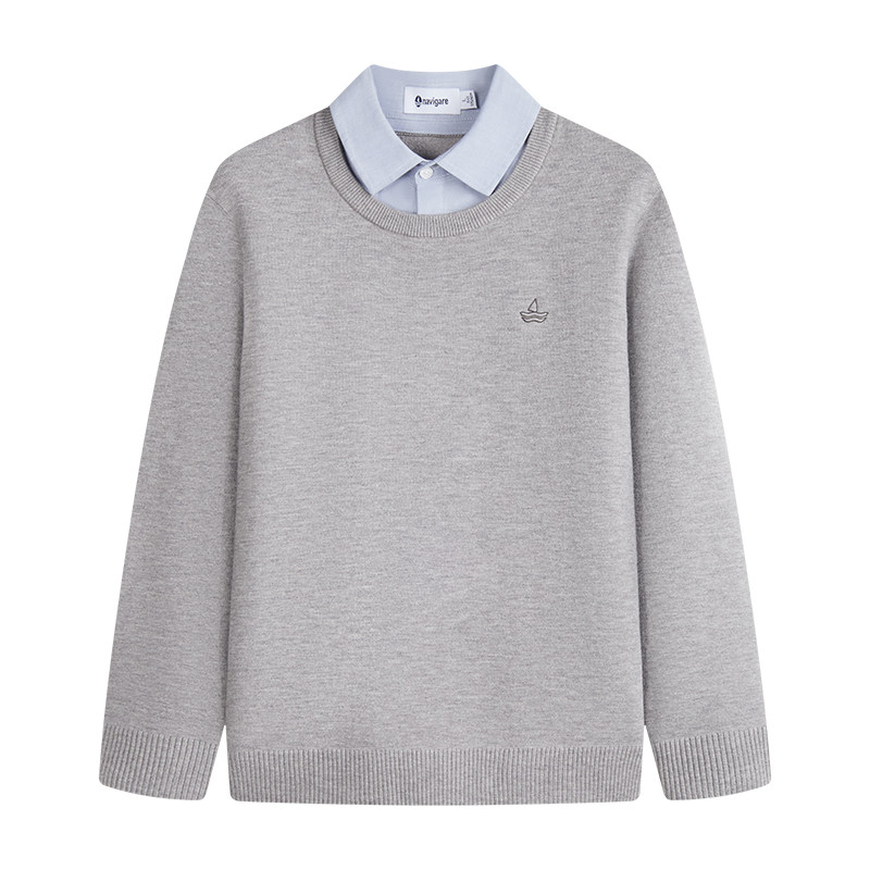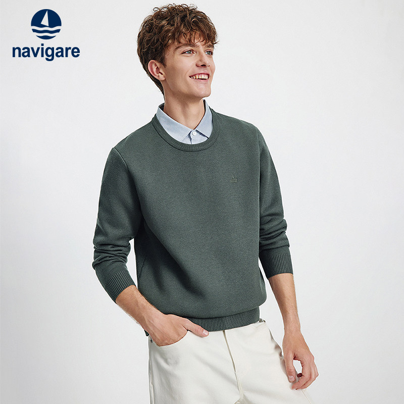 Navigare意大利小帆船通勤假两件针织衫男26春季新品加绒保暖毛衣