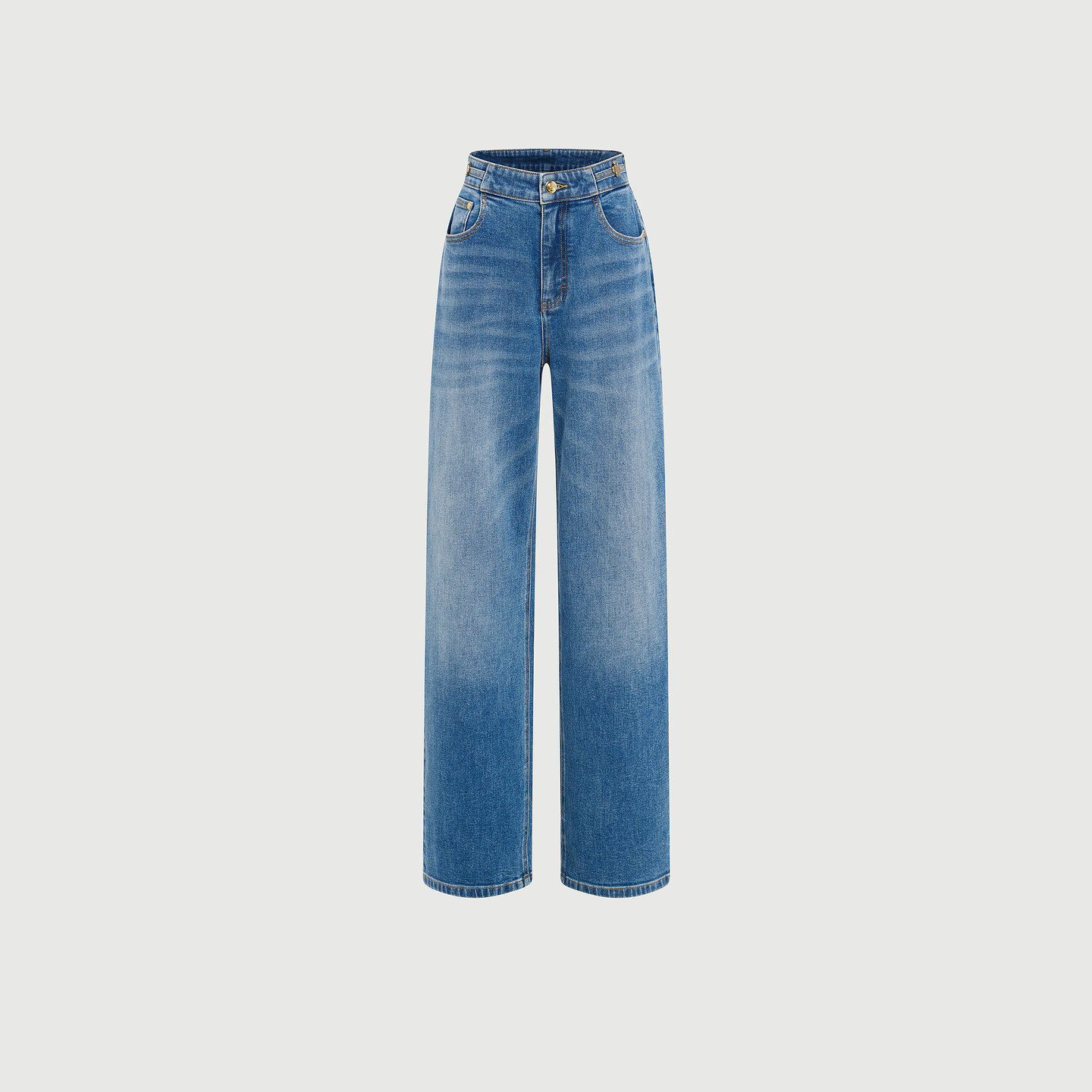 twosweet【超级裤神】四面弹重塑大长腿高腰直筒微喇叭原色牛仔裤
