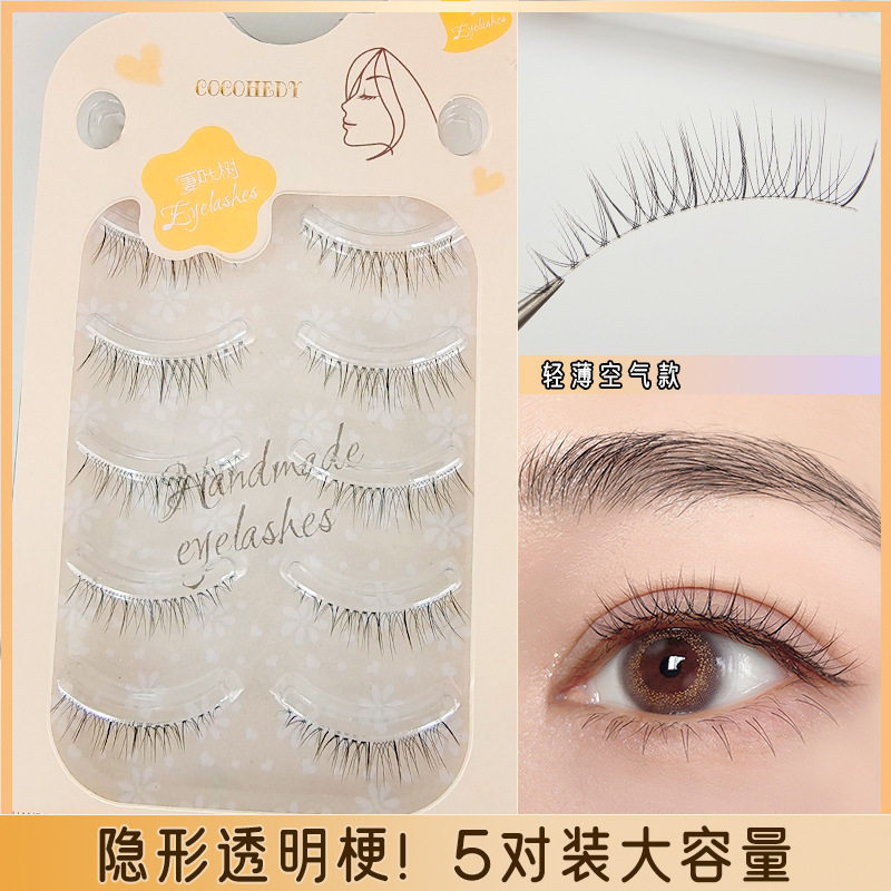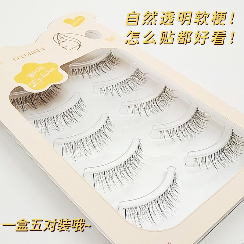假睫毛一片式自然交叉透明梗手工磨尖裸妆素颜可贴整条眼睫毛批发