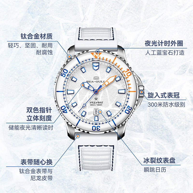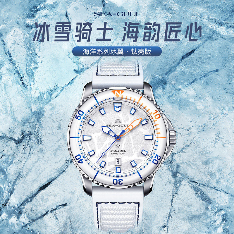 海鸥表海洋系列PRO冰翼钛壳版防水夜光男士运动机械腕表1210