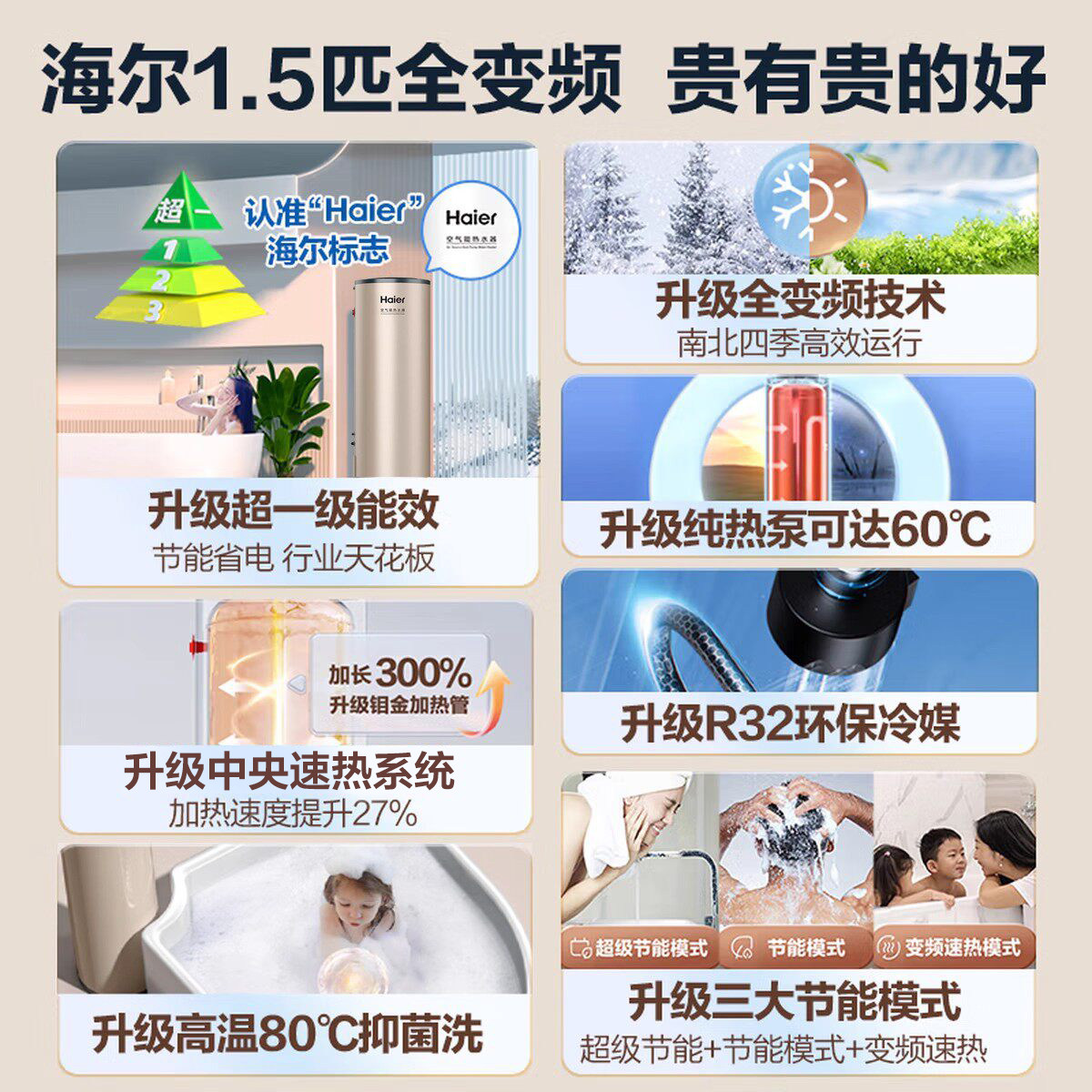 海尔空气能热水器家用200/300/500升商用变频热泵一级能效零冷水