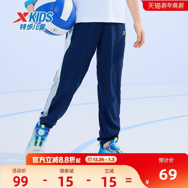 特步童装儿童速干运动裤男童裤子2025夏季新款中大童防蚊长裤夏装