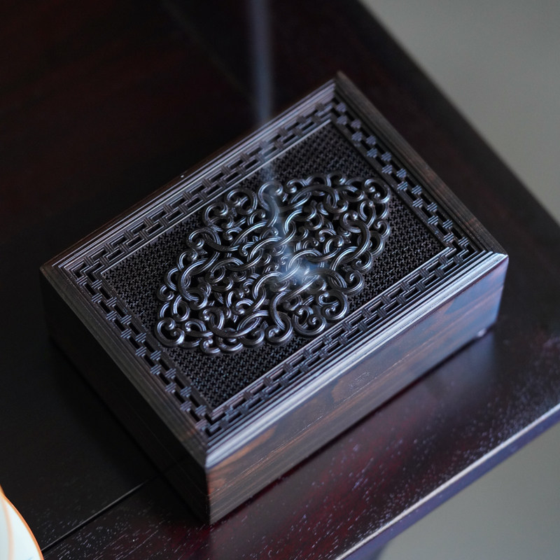 紫光檀熏香盒客厅家用熏香炉沉香香薰炉实木香道檀香镂空盘饰品盒
