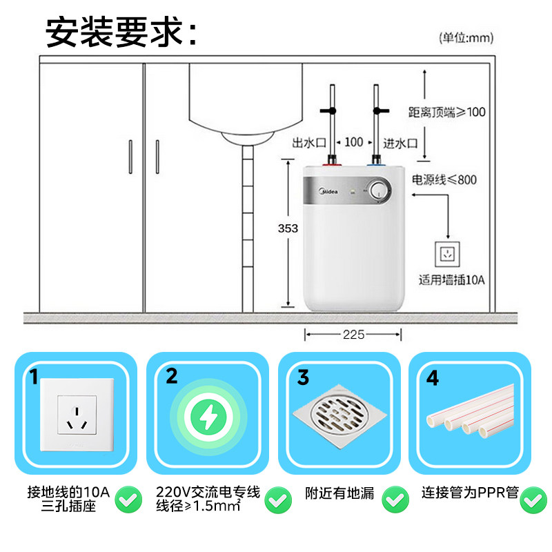 美的小厨宝电热水器5升储水式家用一级能效厨房卫生间小型热水器