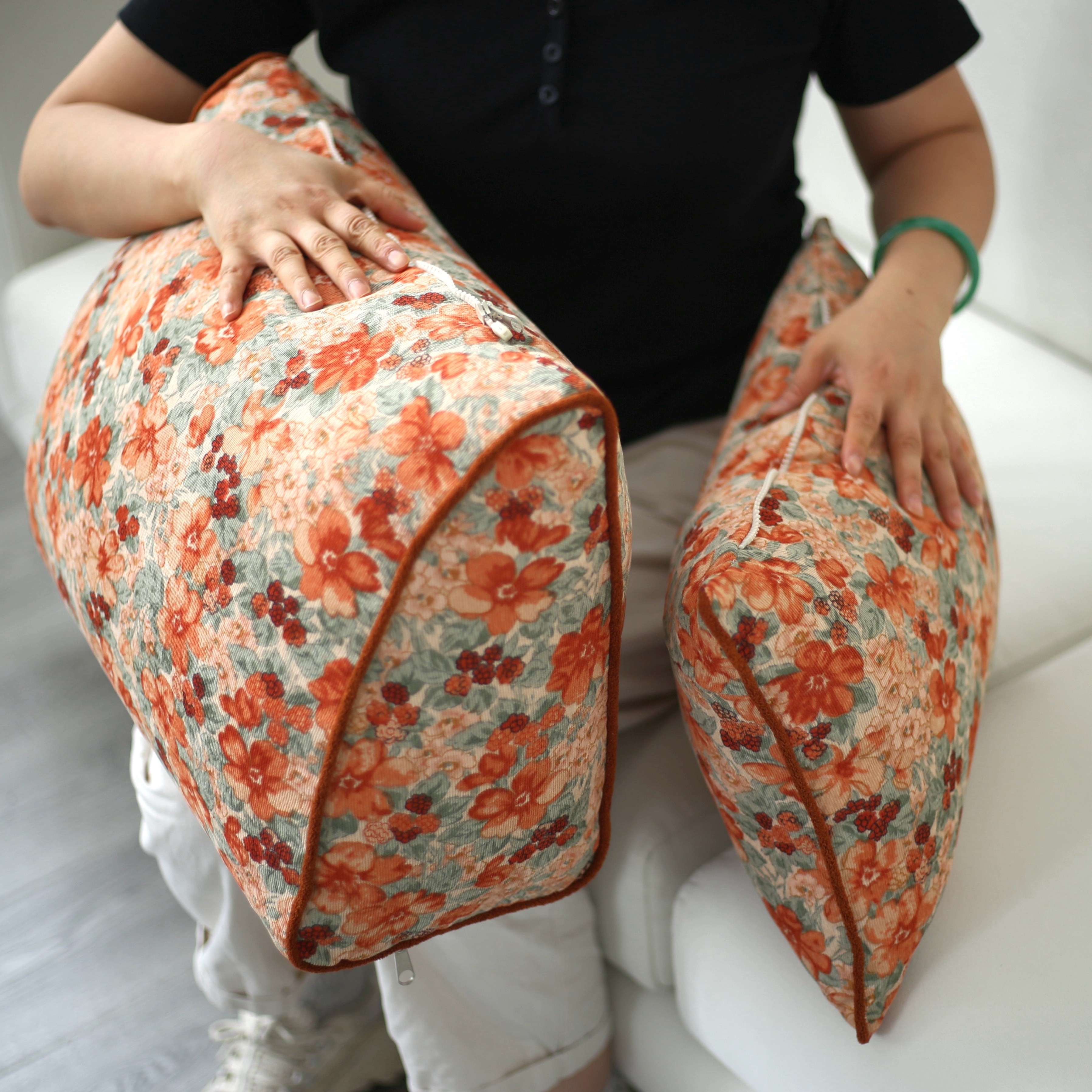 奶油风腰枕长方形沙发靠垫卧室床头客厅雪尼尔绿色沙发抱枕靠枕套