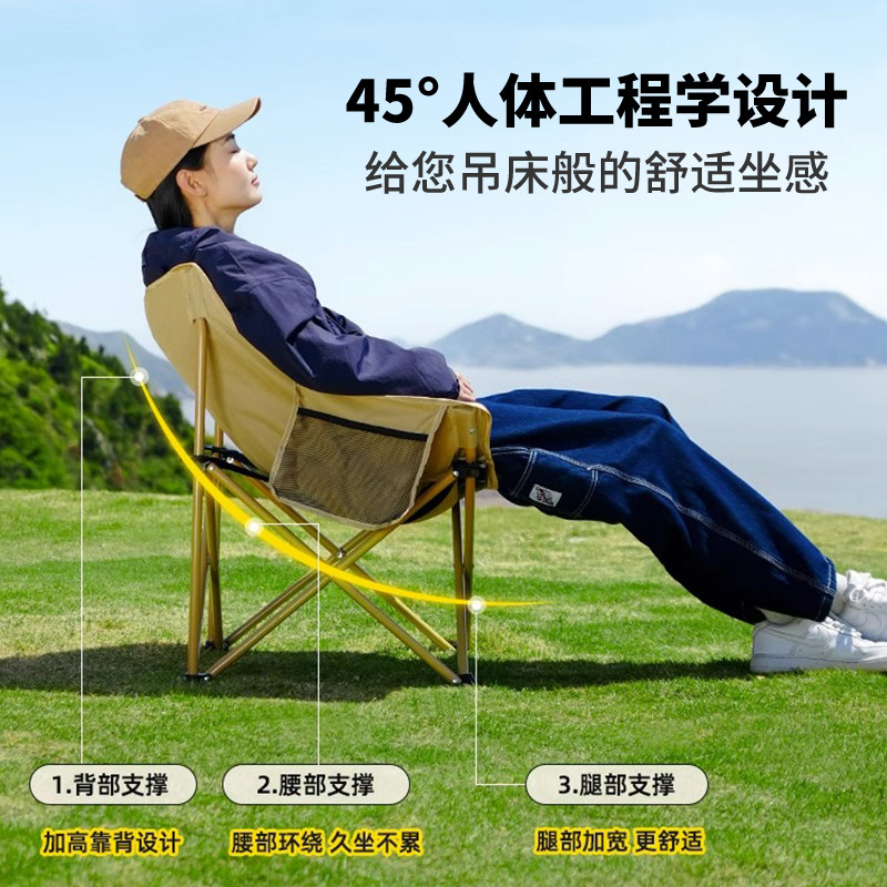 月亮椅露营椅子高靠背户外折叠椅便携式躺椅钓鱼凳沙滩椅野餐桌椅