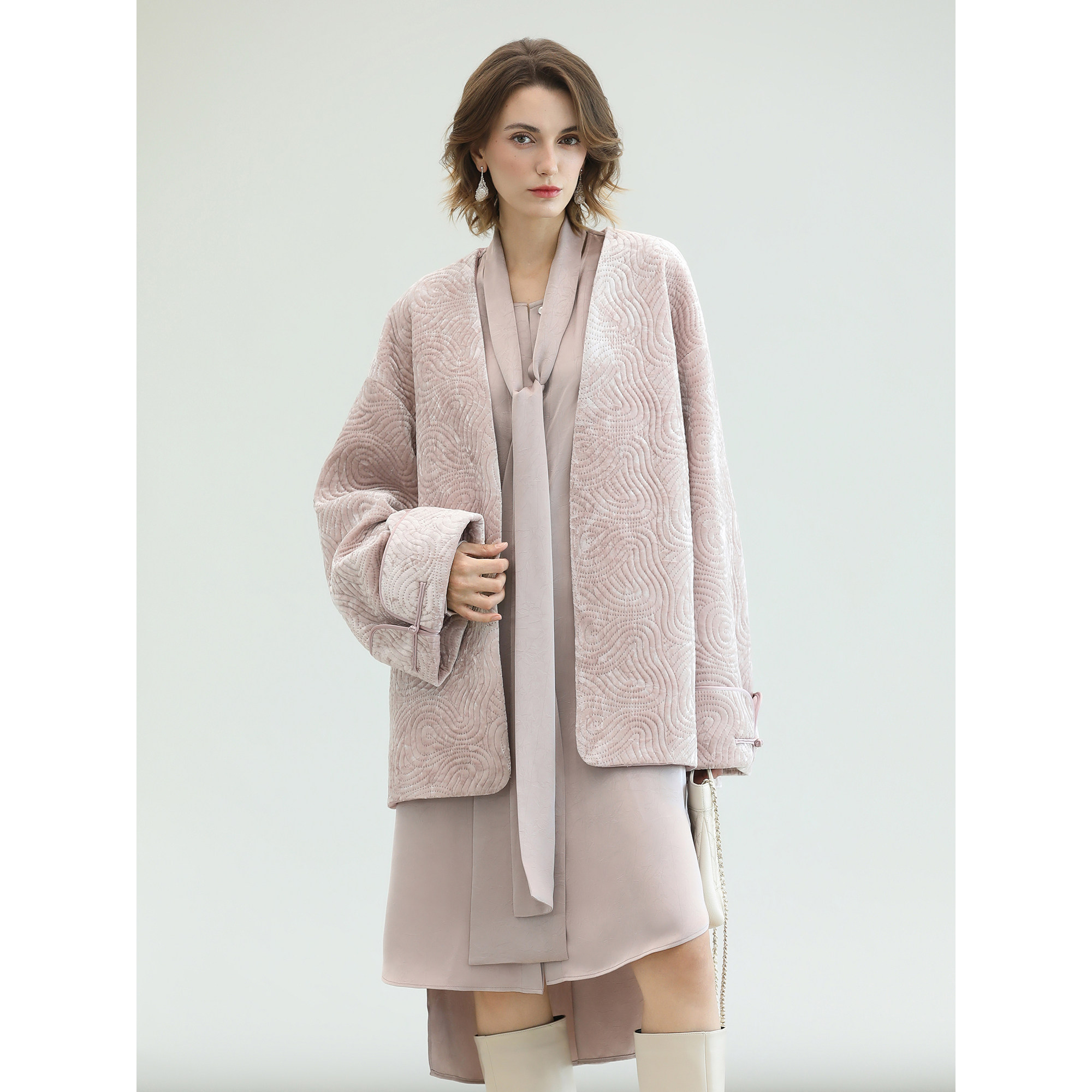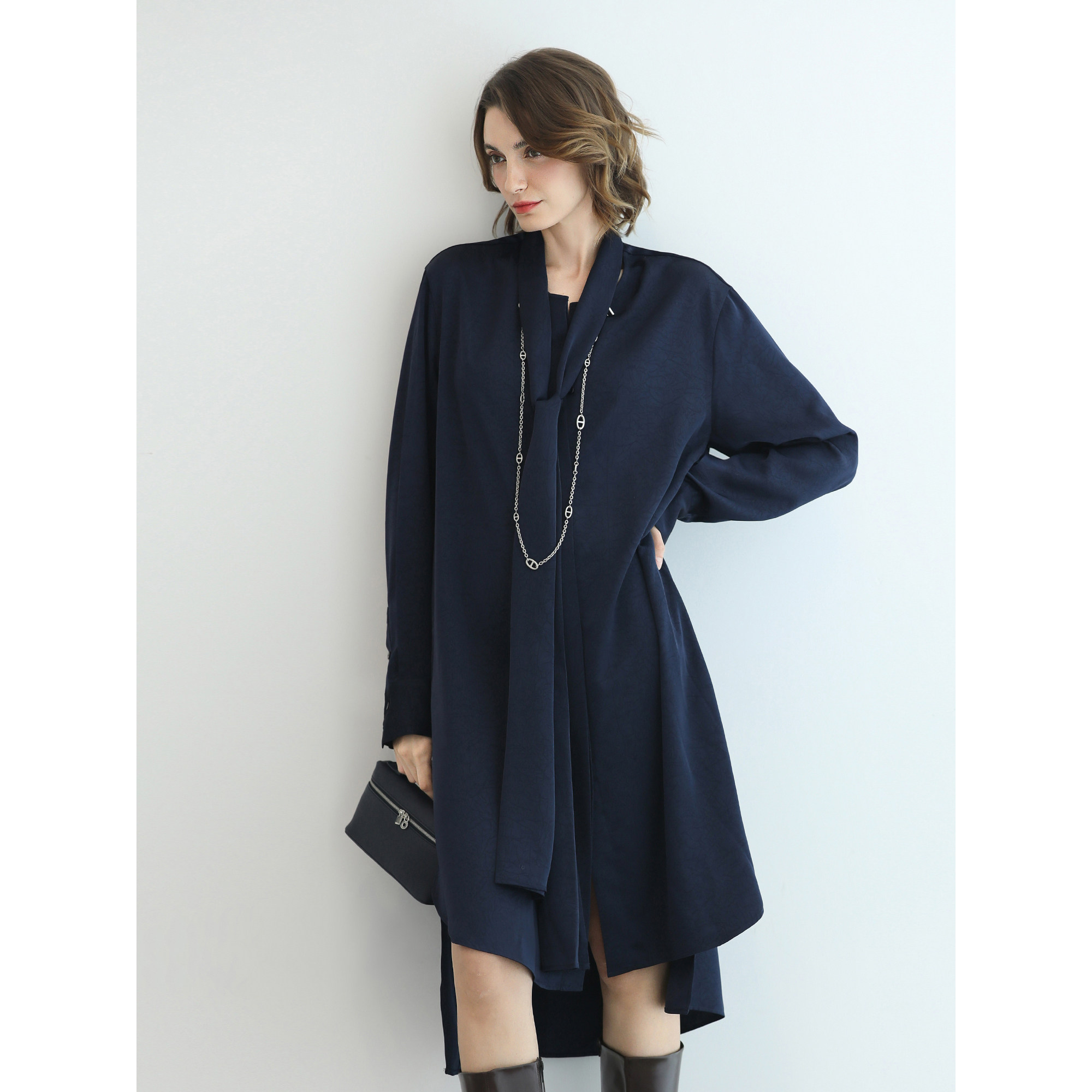 COCOBELLA轻奢仿醋酸飘带连衣裙秋冬缎面中长款衬衫裙FR3240