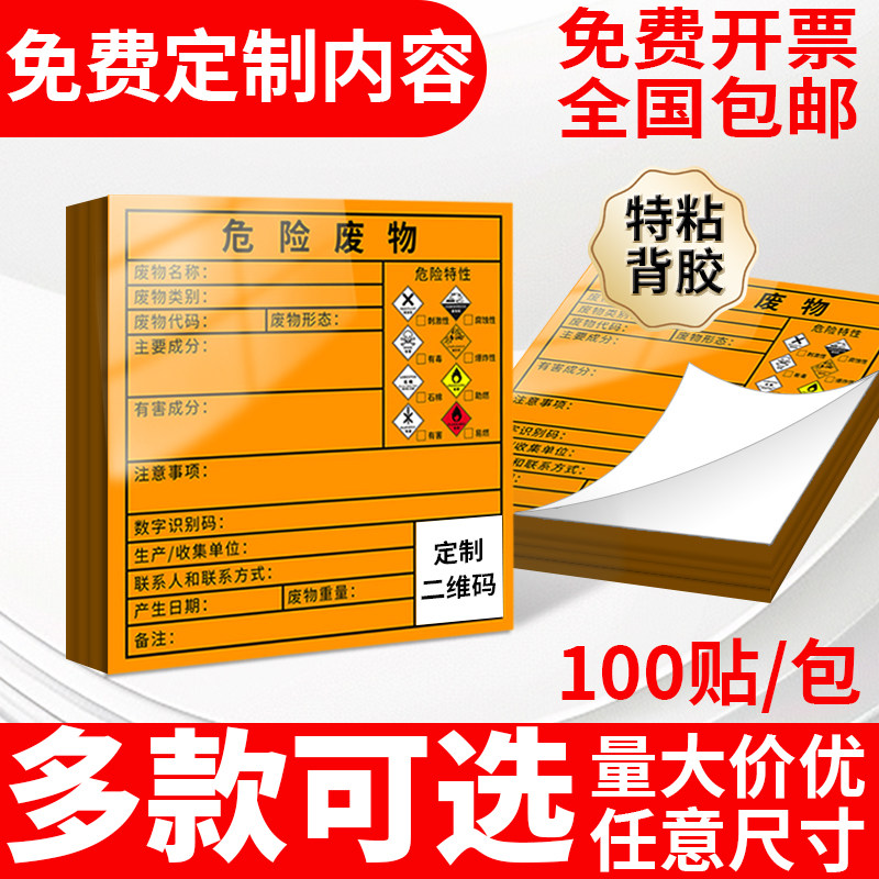 汽修危险废物标签贴纸新国标危险废物标识废机油过滤棉油漆桶润滑油工厂车间抹布手套背胶标签纸标识牌警示牌