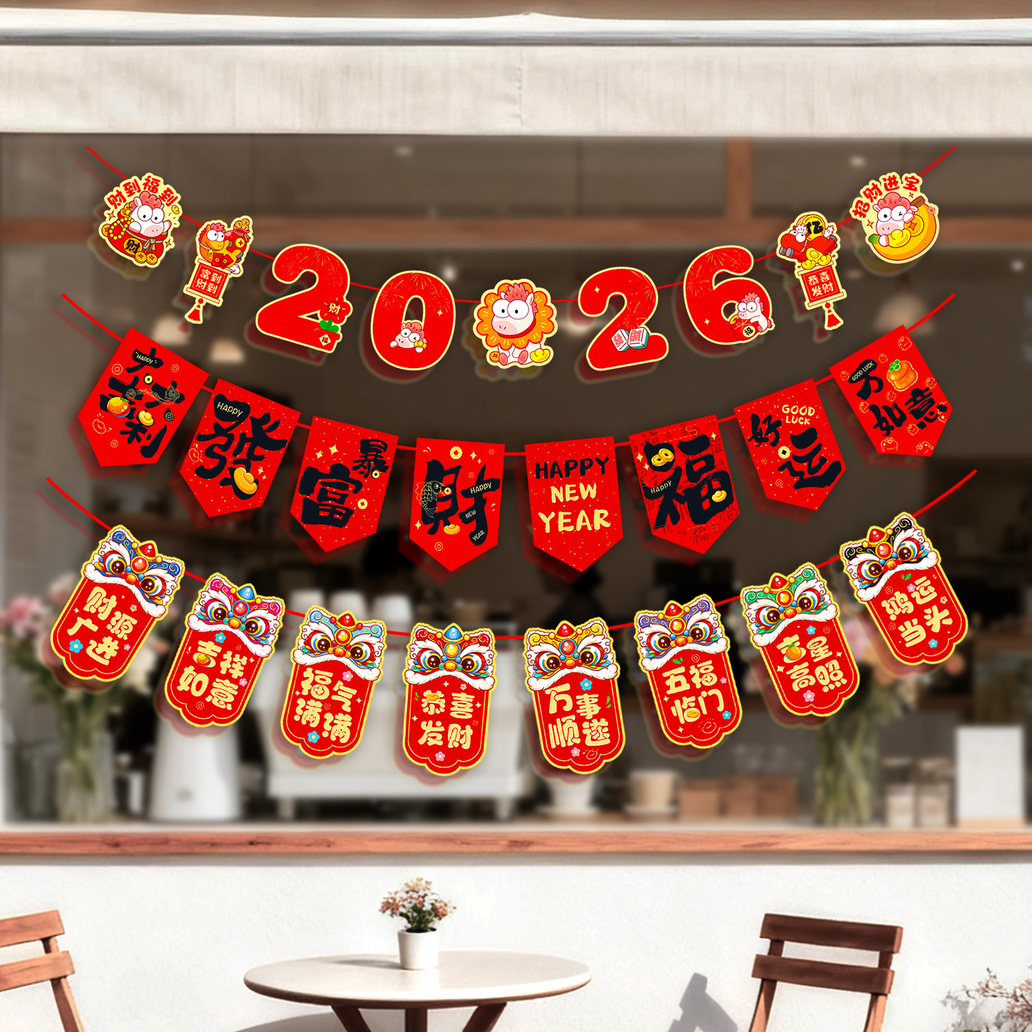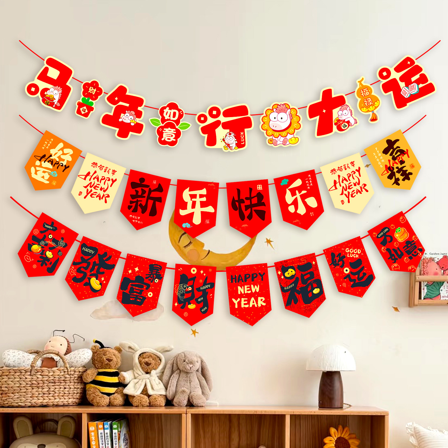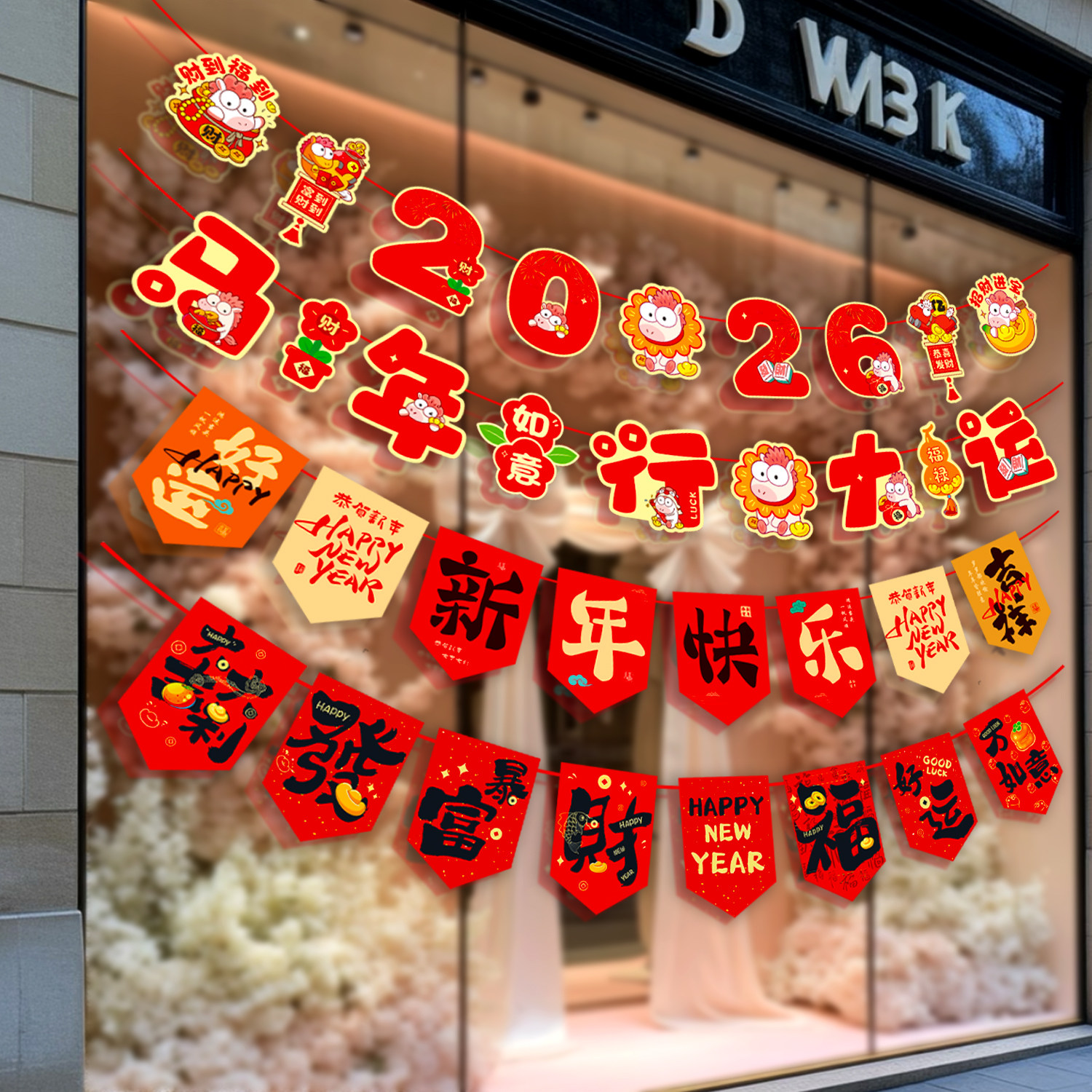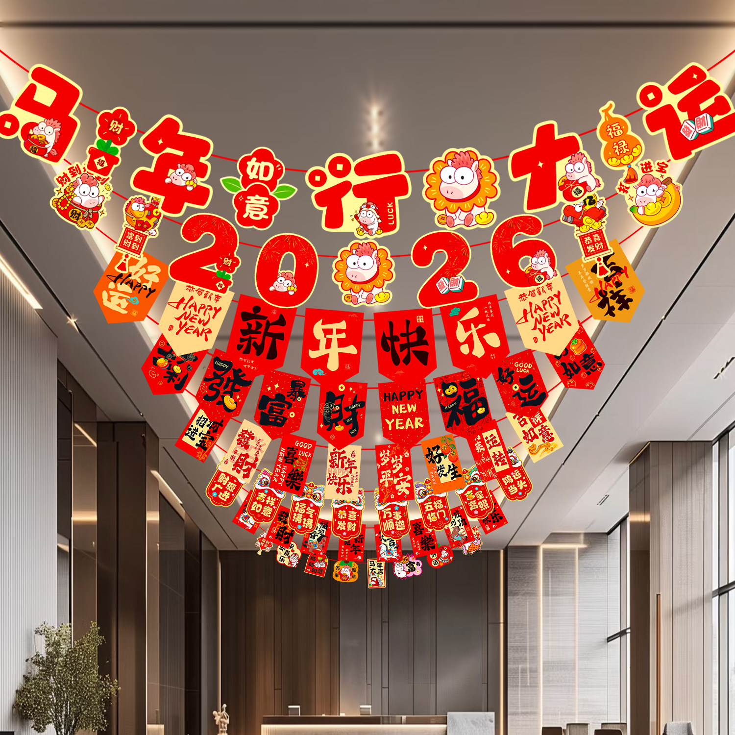 2026马年装饰拉旗节日新款元旦新年商场学校装扮彩旗挂饰氛围布置