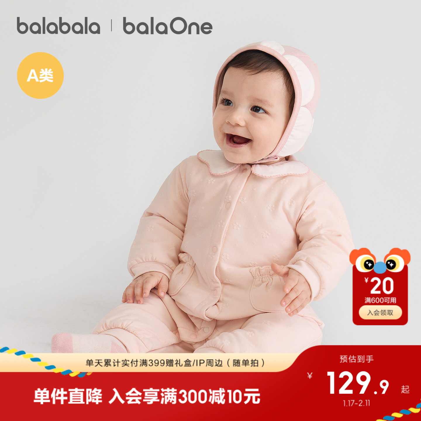 巴拉巴拉新生婴儿连体衣宝宝哈衣爬服2025新款冬装加厚甜美精致萌