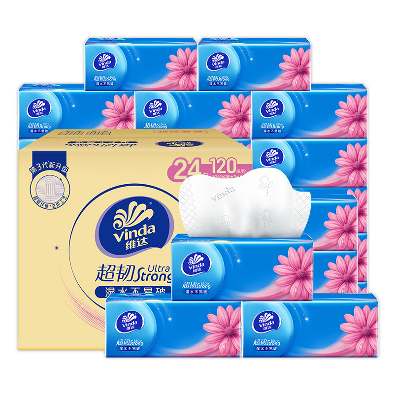 维达超韧抽纸120抽大包实惠装纸巾家用卫生纸抽取式原生无香味