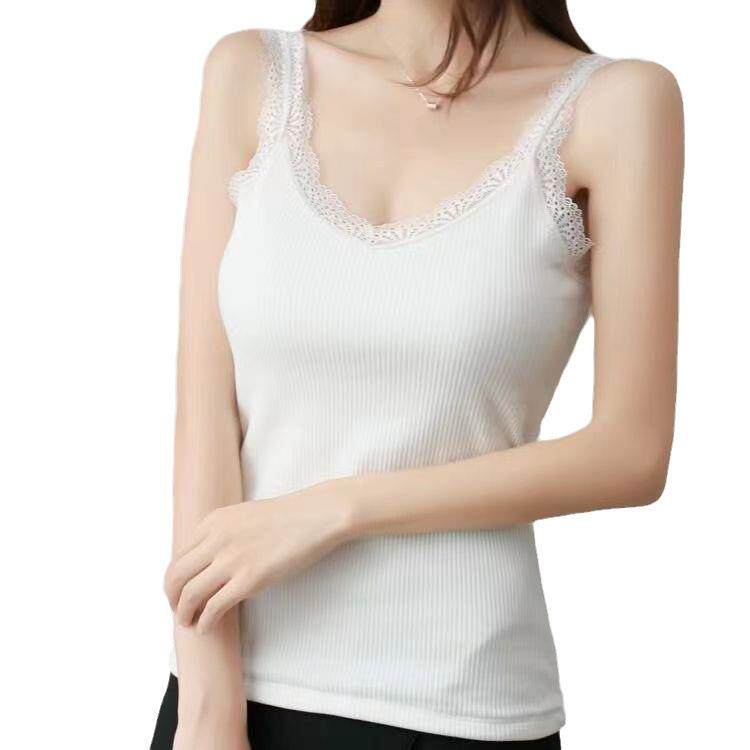 莫代尔棉夏季新款女装蕾丝螺纹外穿内搭清凉舒适吊带背心打底上衣