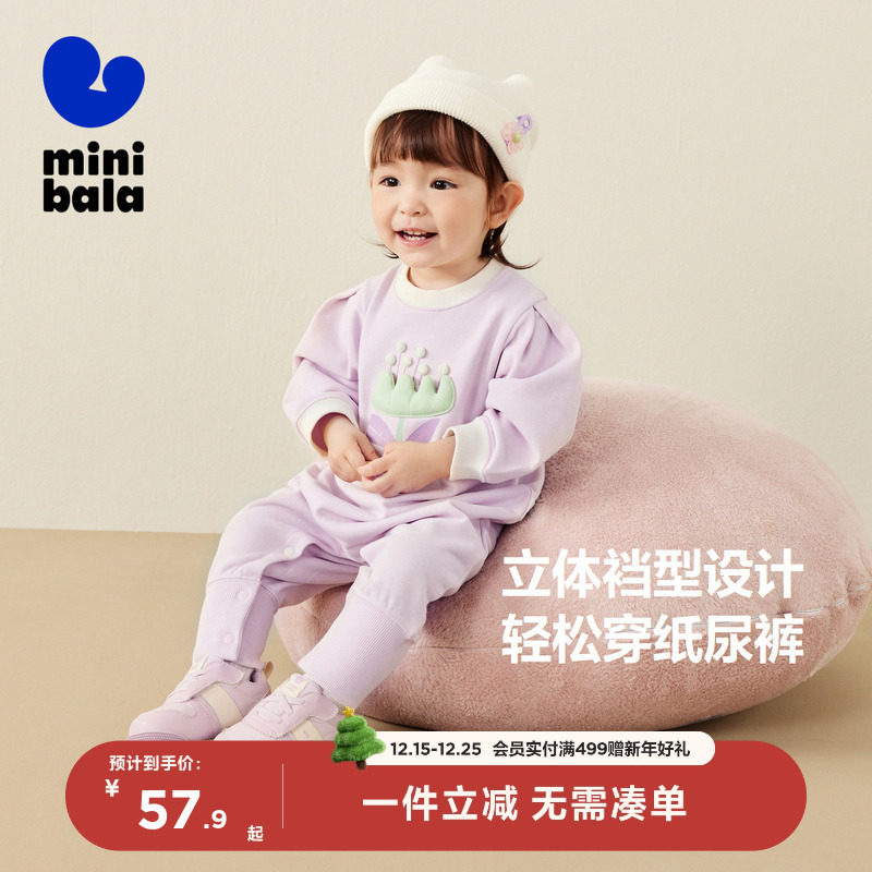 迷你巴拉巴拉外出连体衣女童宝宝萌趣包屁衣长袖春秋新款爬服