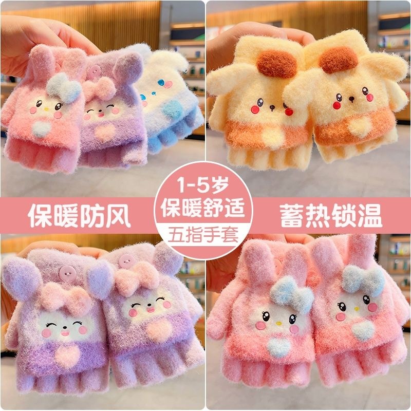 儿童手套新款小女孩五指套冬季男女童保暖宝宝手指套半指翻盖写字