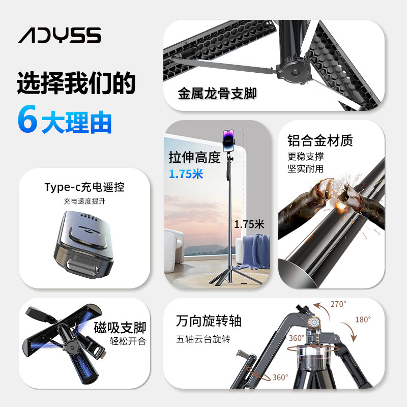 ADYSS叠品自拍杆便携式手机支架一体旅游拍照神器拍摄直播三脚架