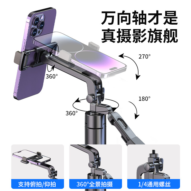 叠品A21P防抖2026新款多功能自拍杆360度全景旋转抖音蓝牙靓点加长落地直播三脚架便携手机旅游拍照专用神器