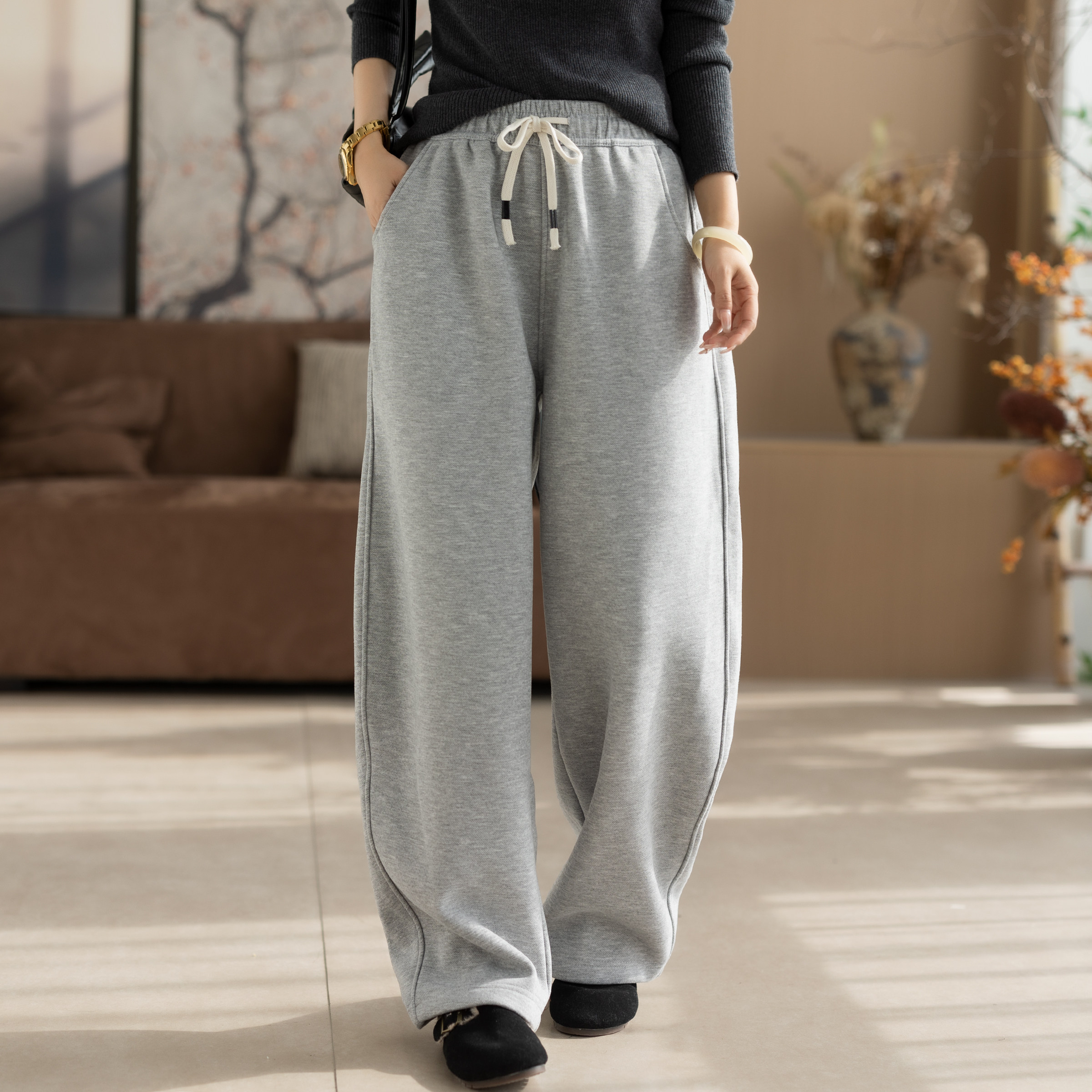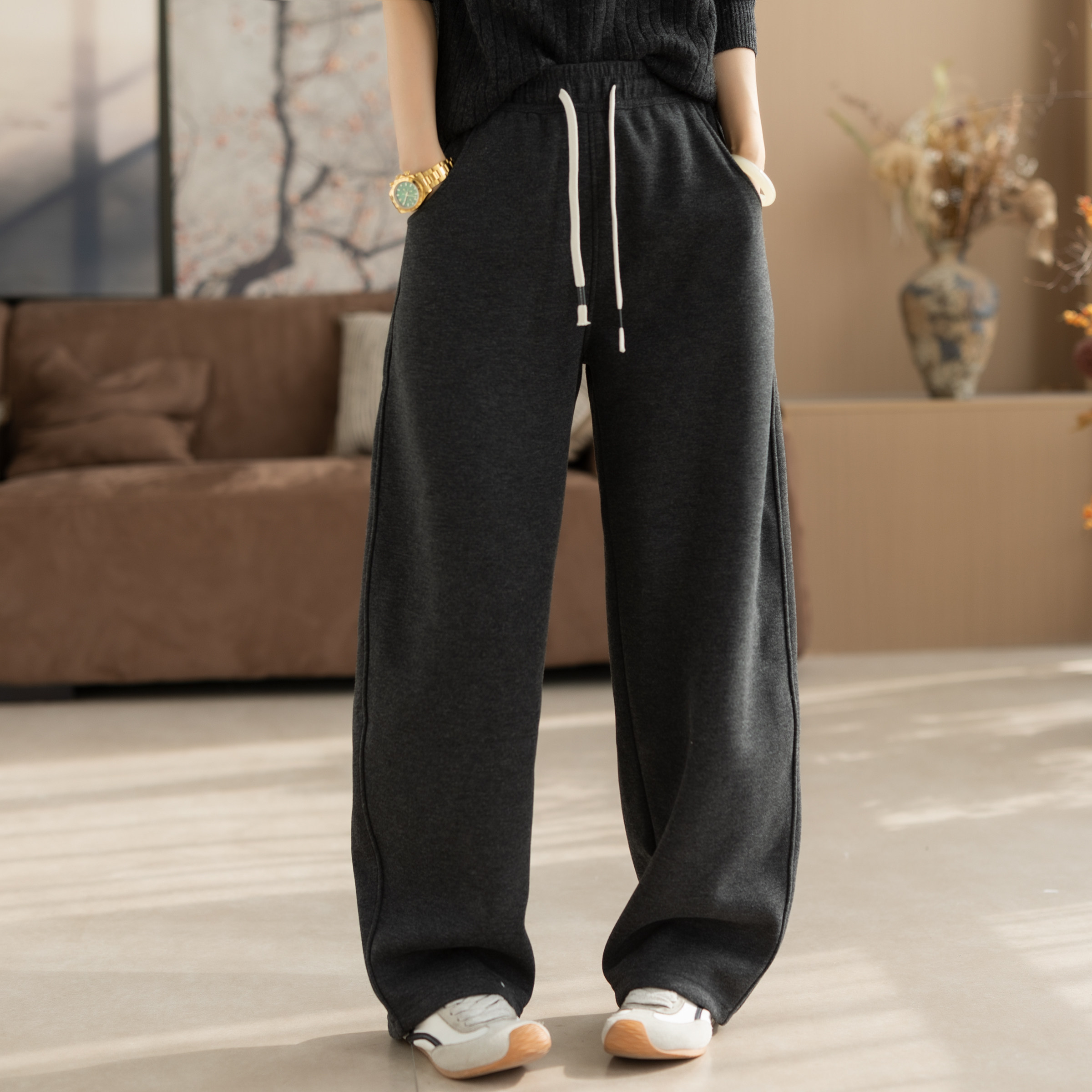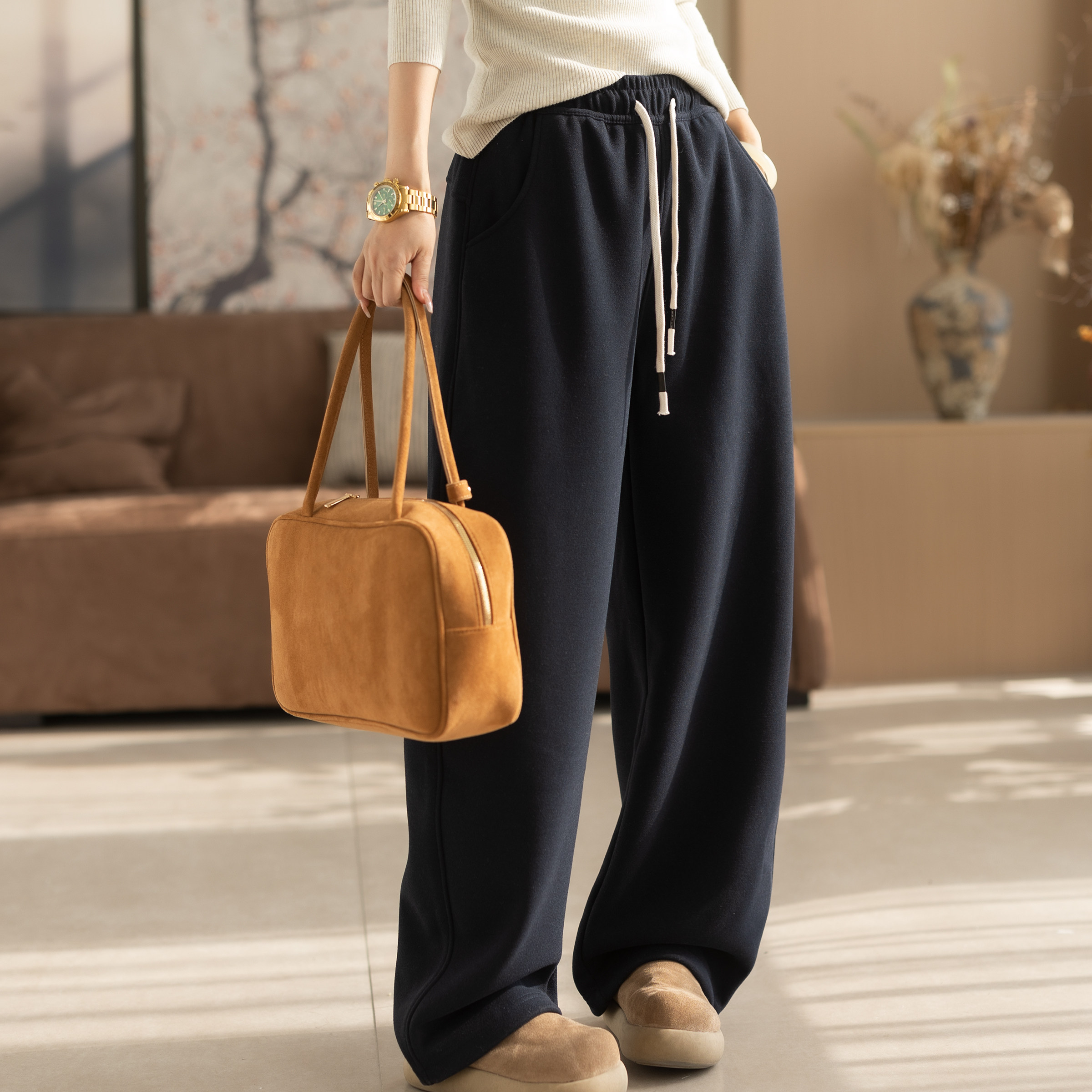 糯米裤女羊羔绒垂坠感软糯加绒加厚秋冬韩系慵懒松弛感阔腿裤TB