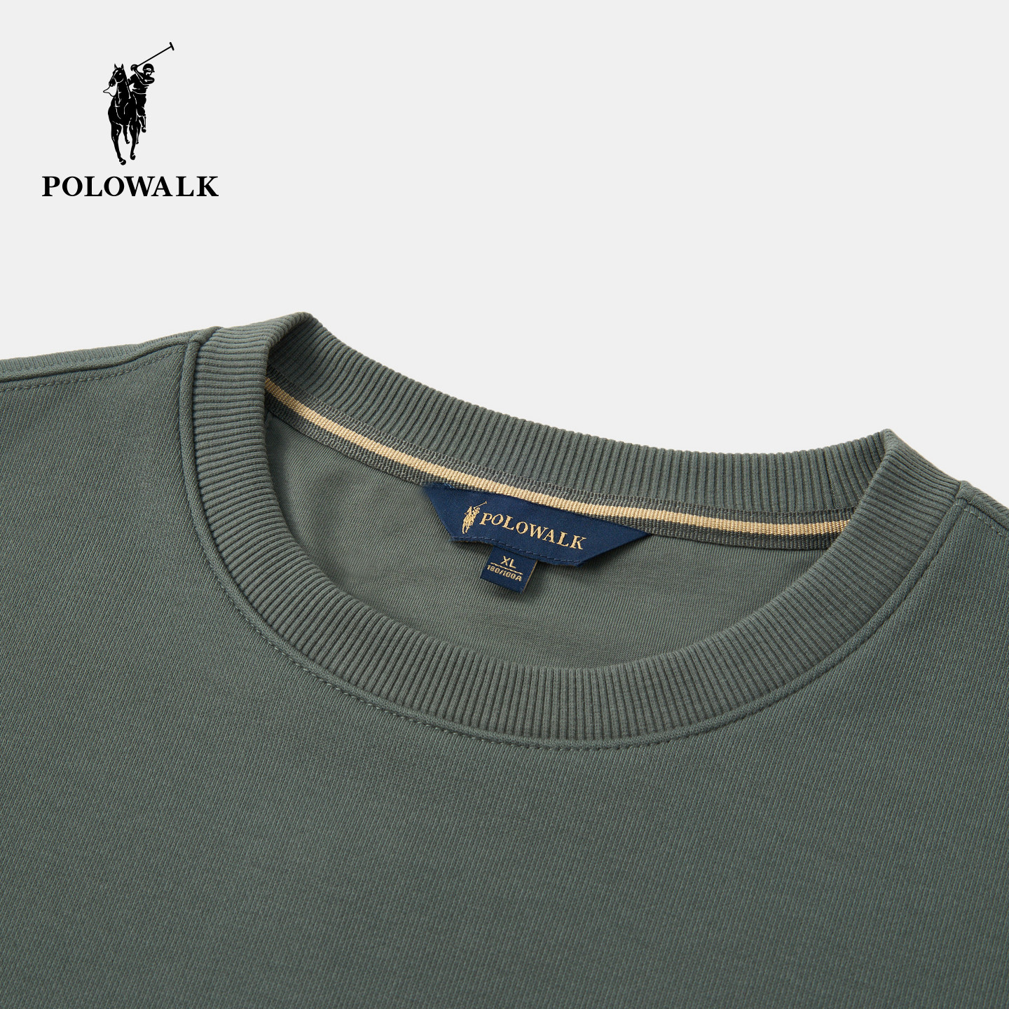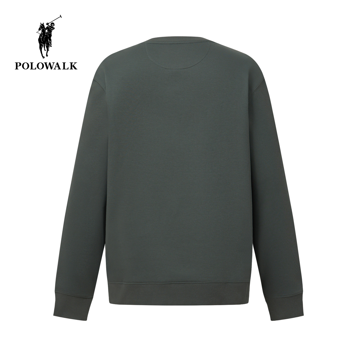 POLOWALK男式休闲卫衣2025冬季新品简约纯色加绒保暖套头圆领上衣
