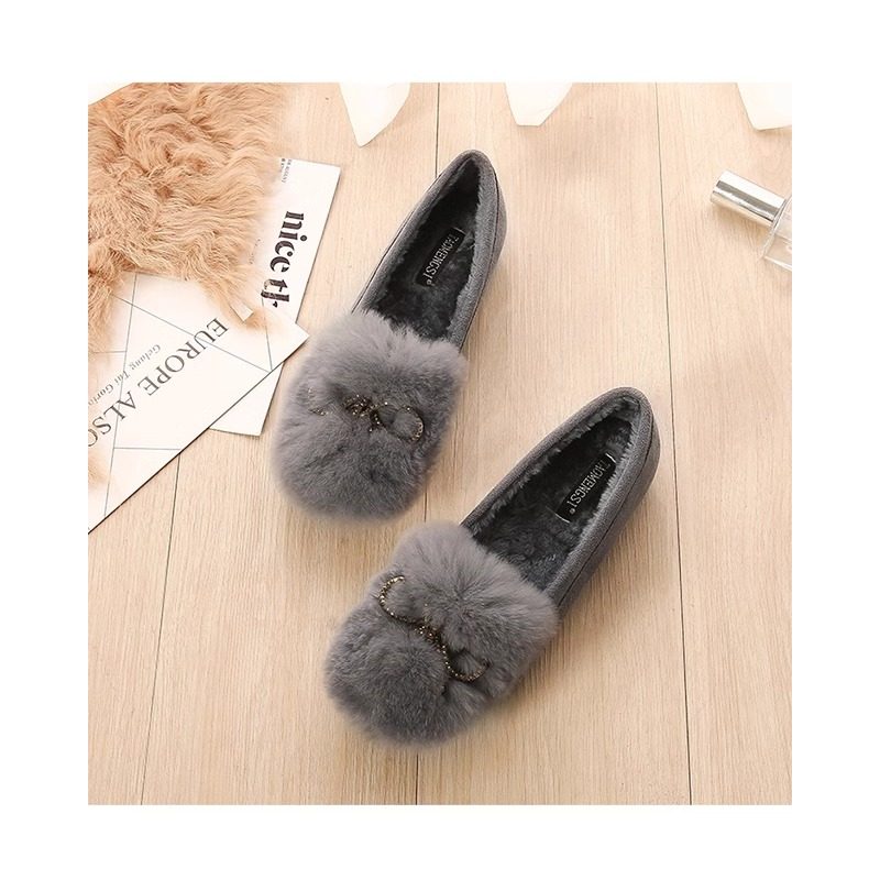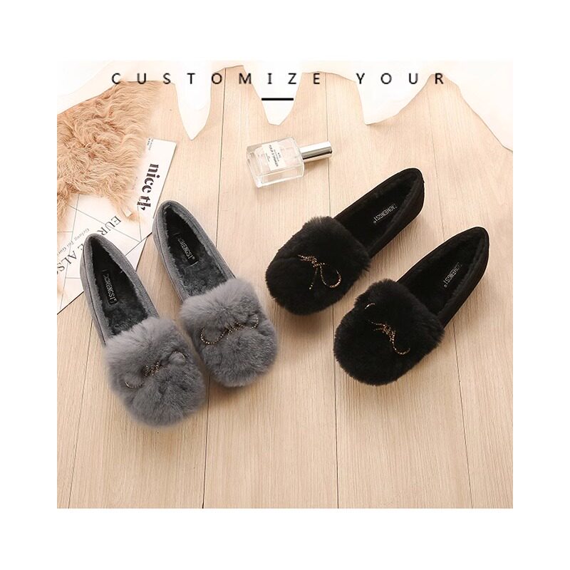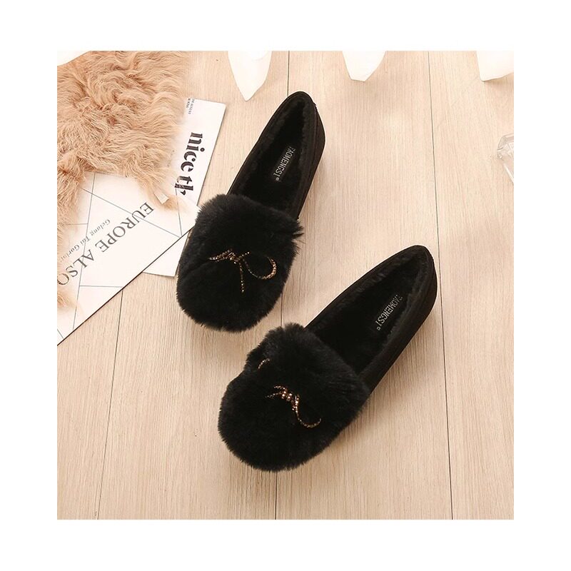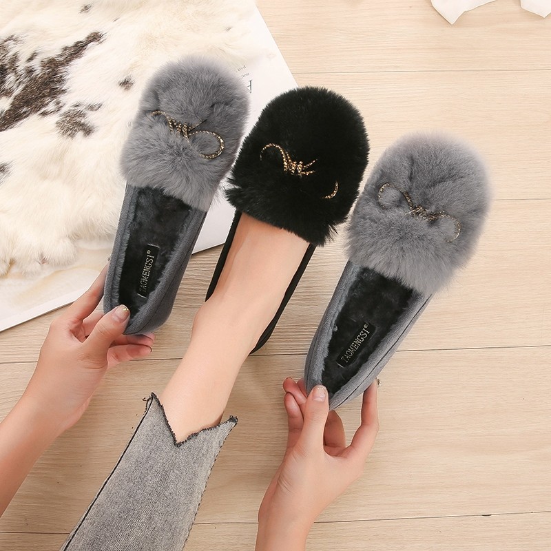 棉瓢鞋毛毛鞋女浅口大码水钻外穿豆豆鞋厚底加绒加厚单鞋43码平底