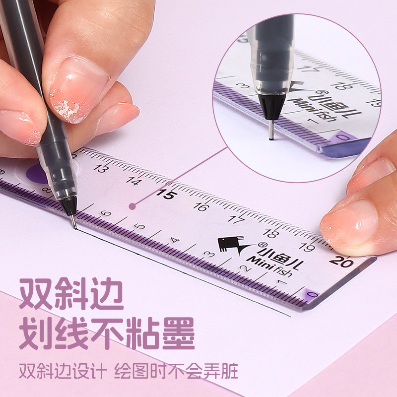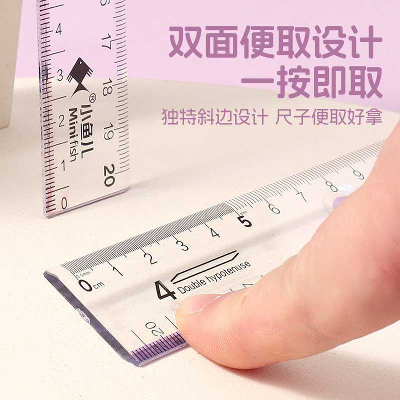 防墨毫米套尺双刻度直尺学生尺子四件套三角尺格尺量角器套装透明亚克力小学生专用初中高颜值20cm多功能尺