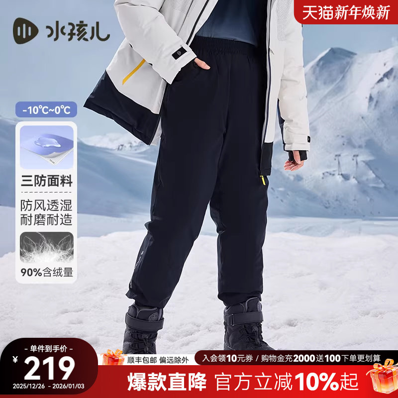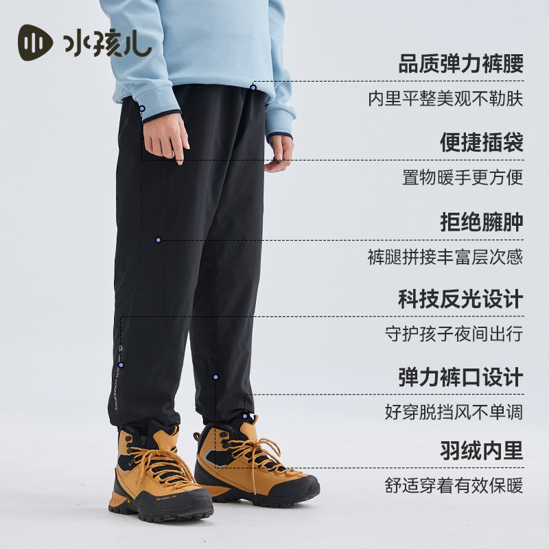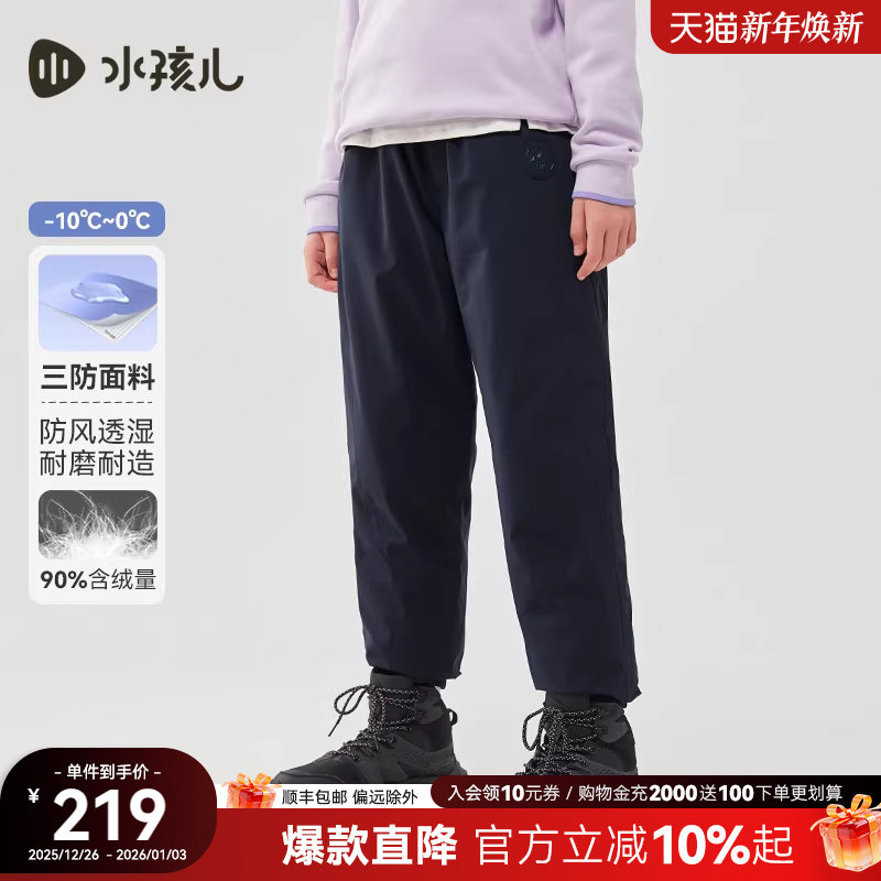 水孩儿儿童长裤女秋冬新品中大童三防羽绒裤男保暖鸭绒裤子