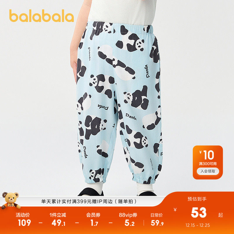 巴拉巴拉儿童裤子男童女童夏季防蚊裤宝宝睡裤天丝人棉长裤可外出