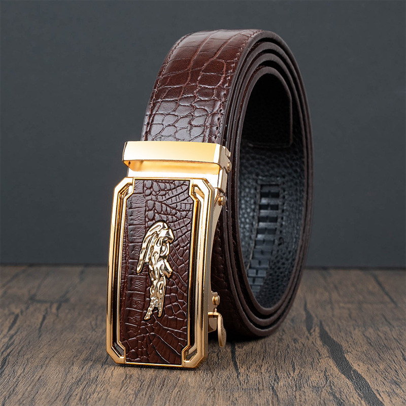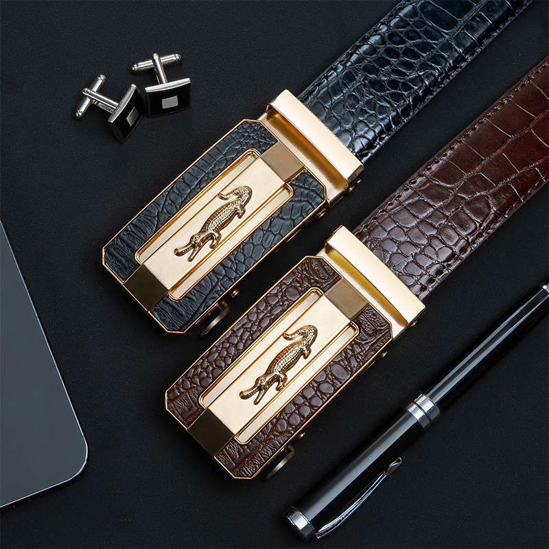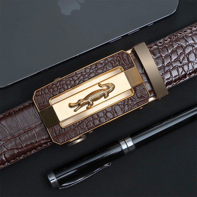 鳄鱼纹男士皮带自动扣真牛皮高档商务休闲百搭年轻人男新款裤腰带