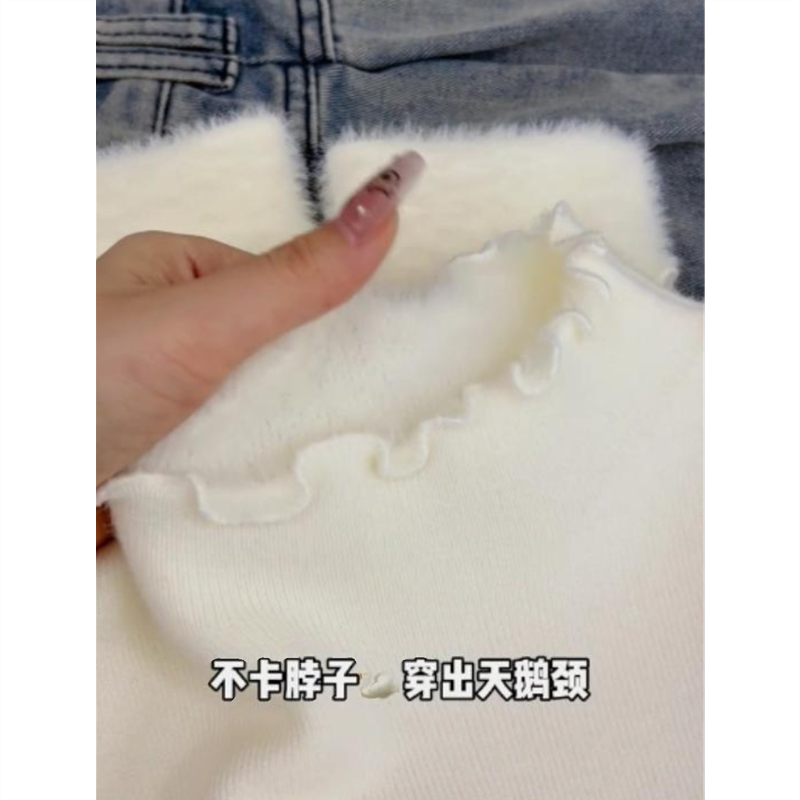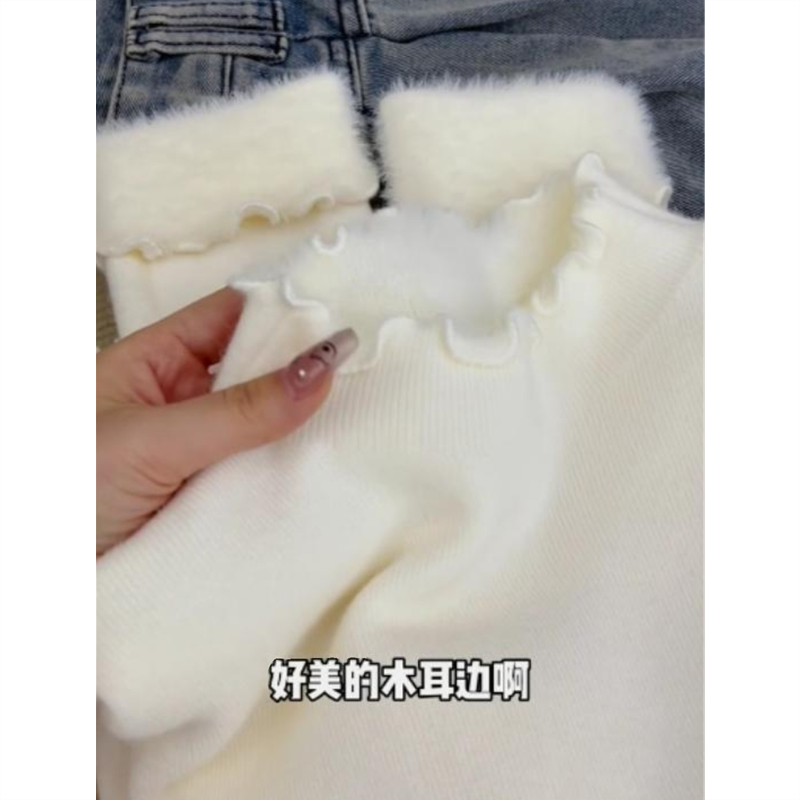 半高领冬季加绒内搭毛衣女大码内搭白色打底衫一体绒加厚上衣秋冬
