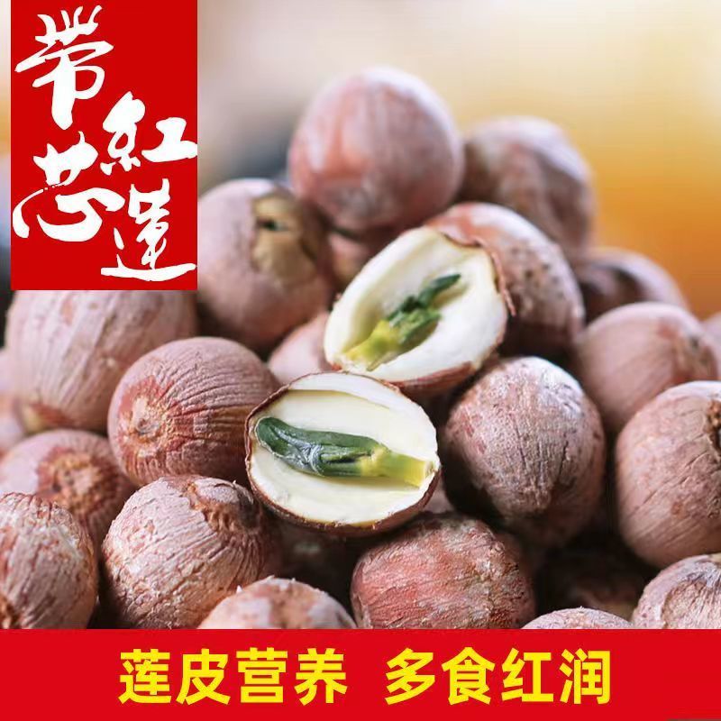 红莲子带心大颗粒湘潭莲子有芯干货农家湖南特产粉糯红皮莲子500g