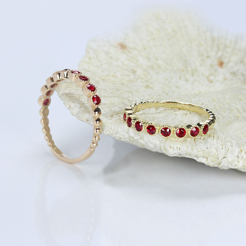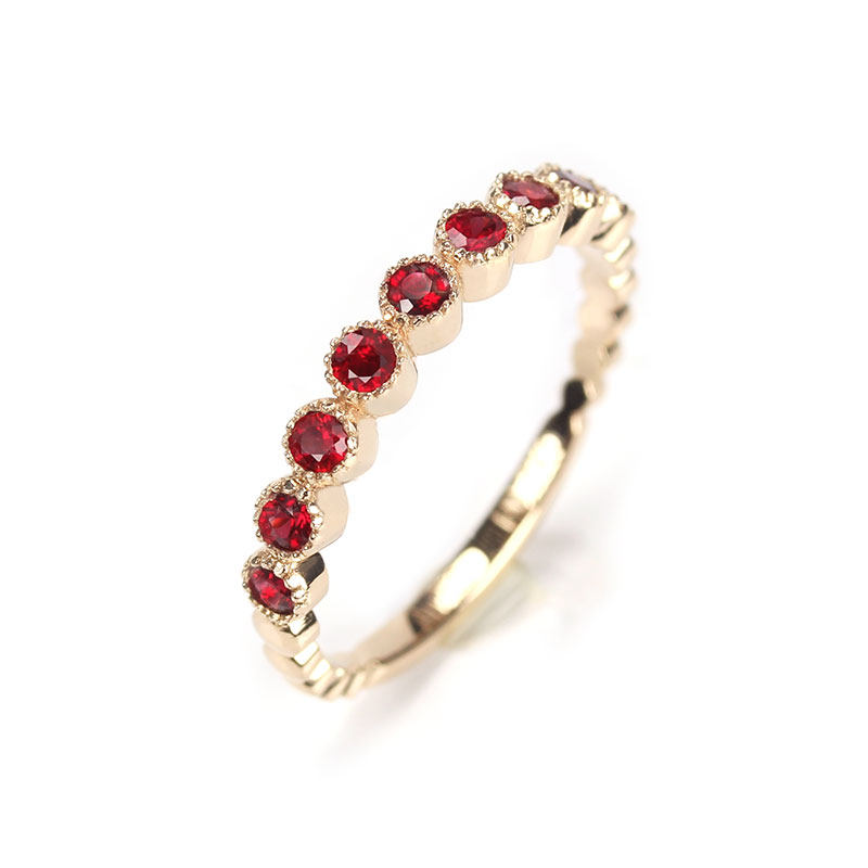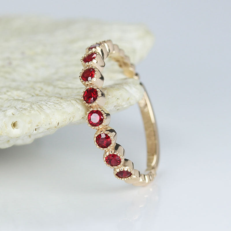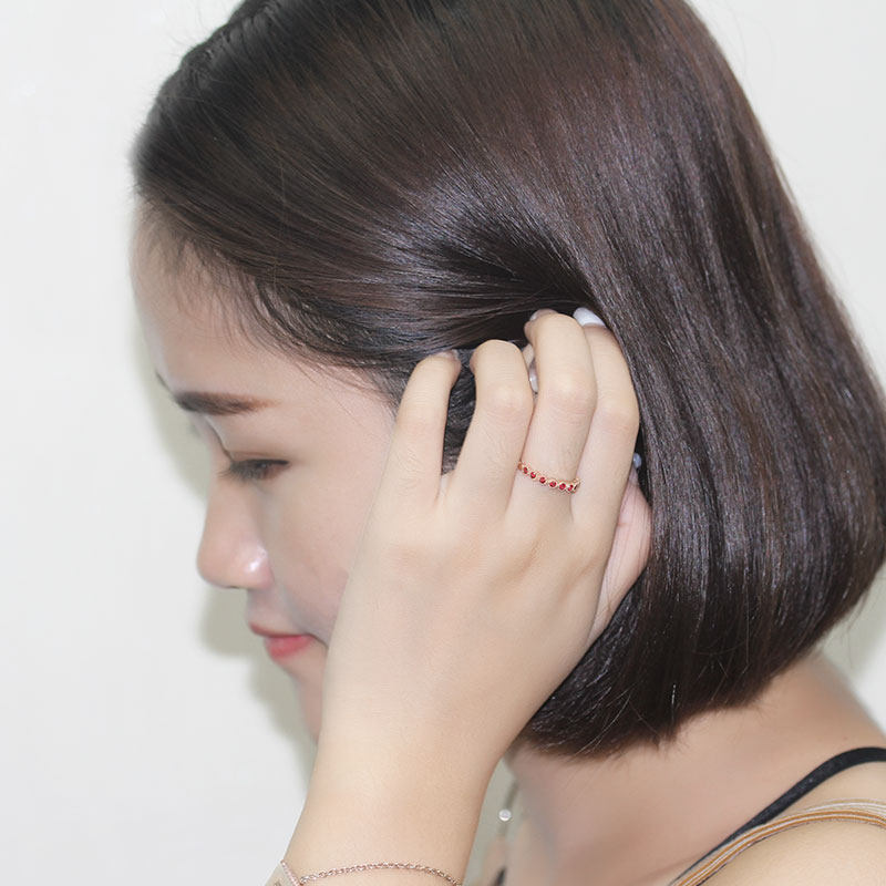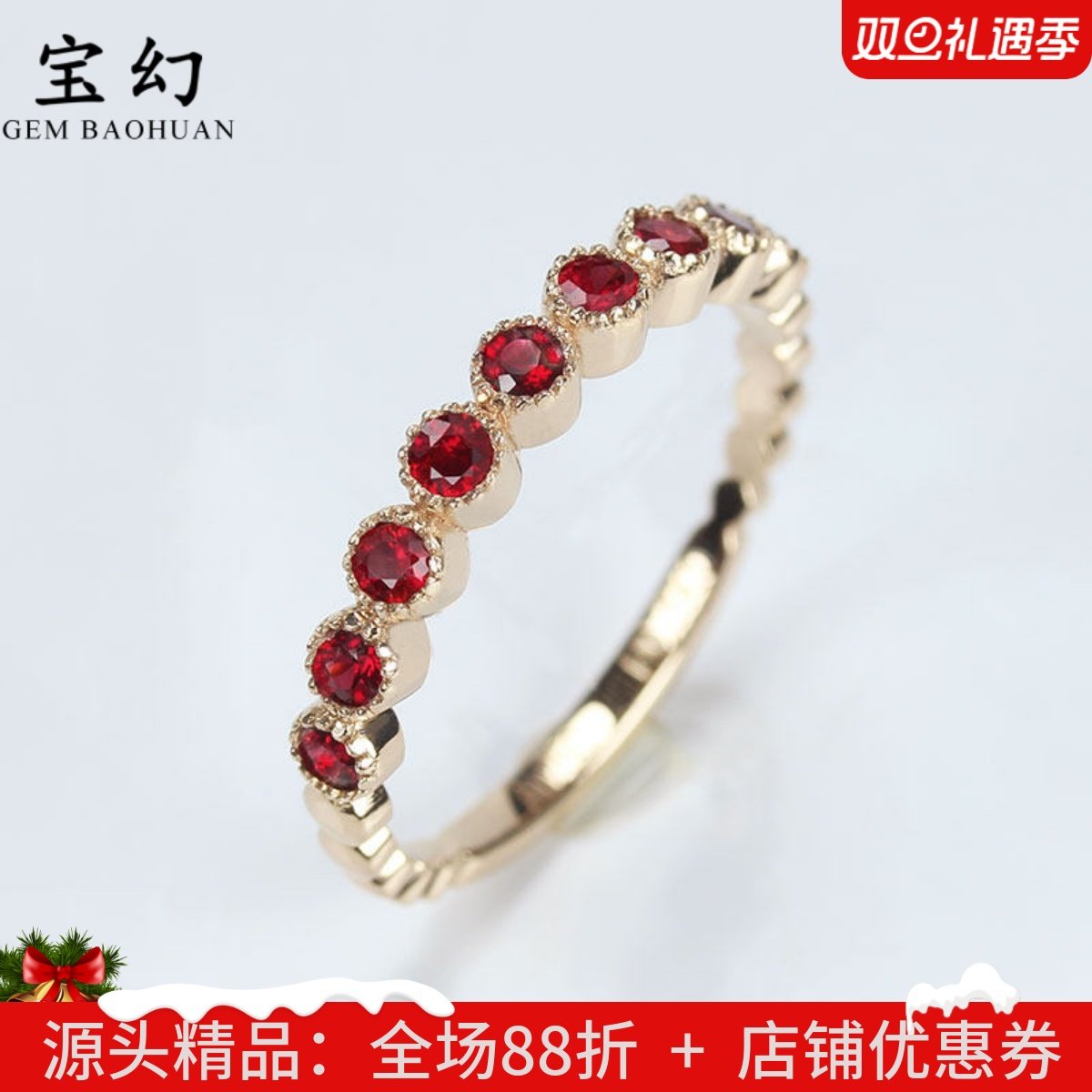 翡宝丽 G18k玫瑰金天然鸽血红宝石复古排戒 茜茜公主黄金百搭尾戒
