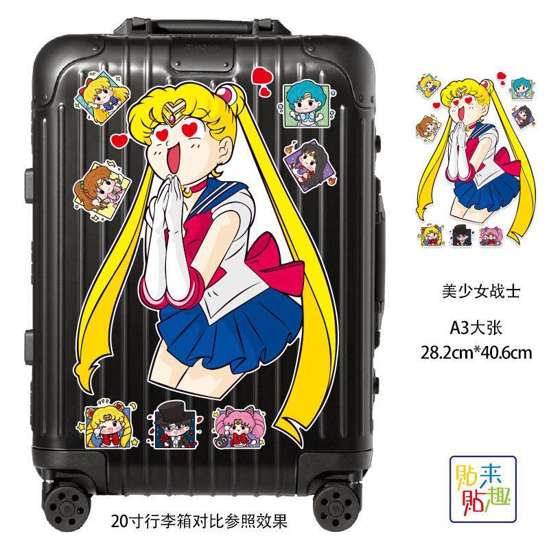 潮牌A3大张行李箱旅行箱可爱卡通贴纸个性滑板冰箱车门装饰贴防水