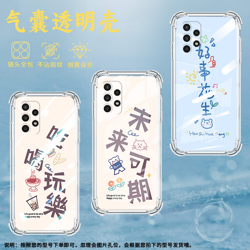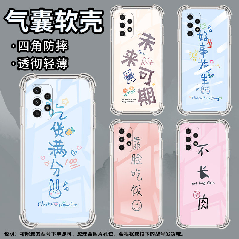 适用三星A23手机壳三星A12高级感三星A02S气囊壳三星A13Lite吃喝玩乐三星A03Core全包边时尚保男女款护套