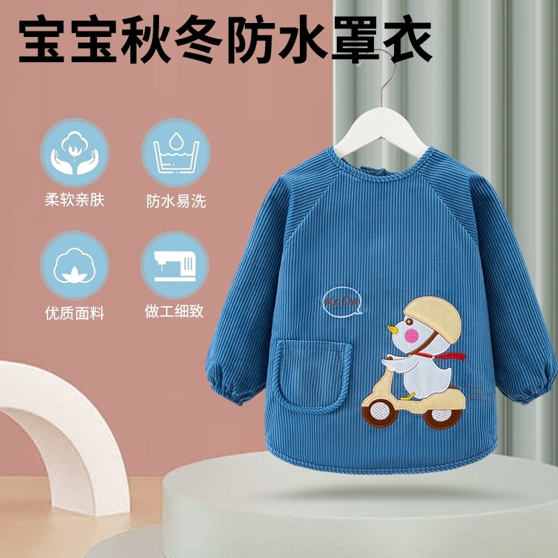 中大童秋冬外穿罩衣罩衫护衣儿童围裙宝宝吃饭围兜防水系带卡通