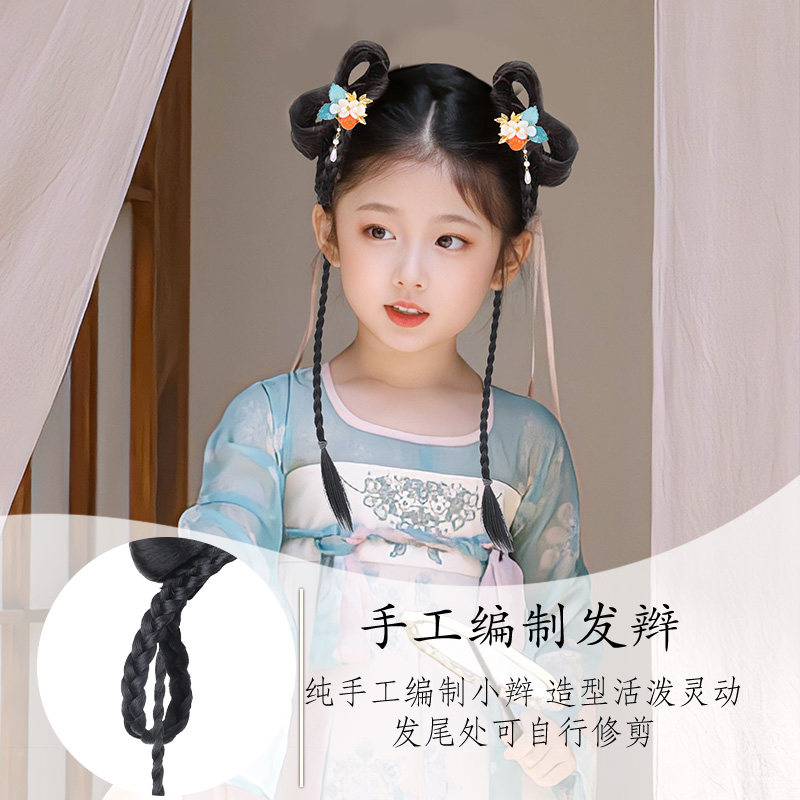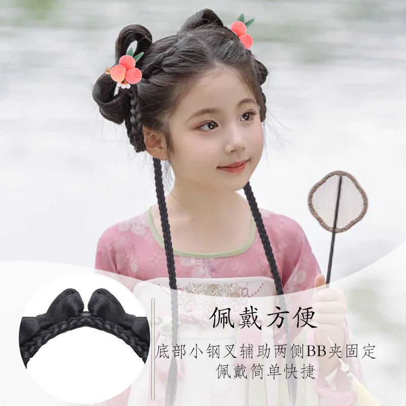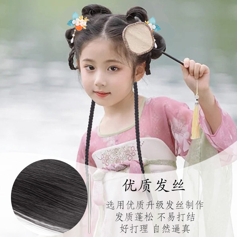 儿童汉服假发包盘发古装一体式发箍古风假发女童发饰发髻头饰国风