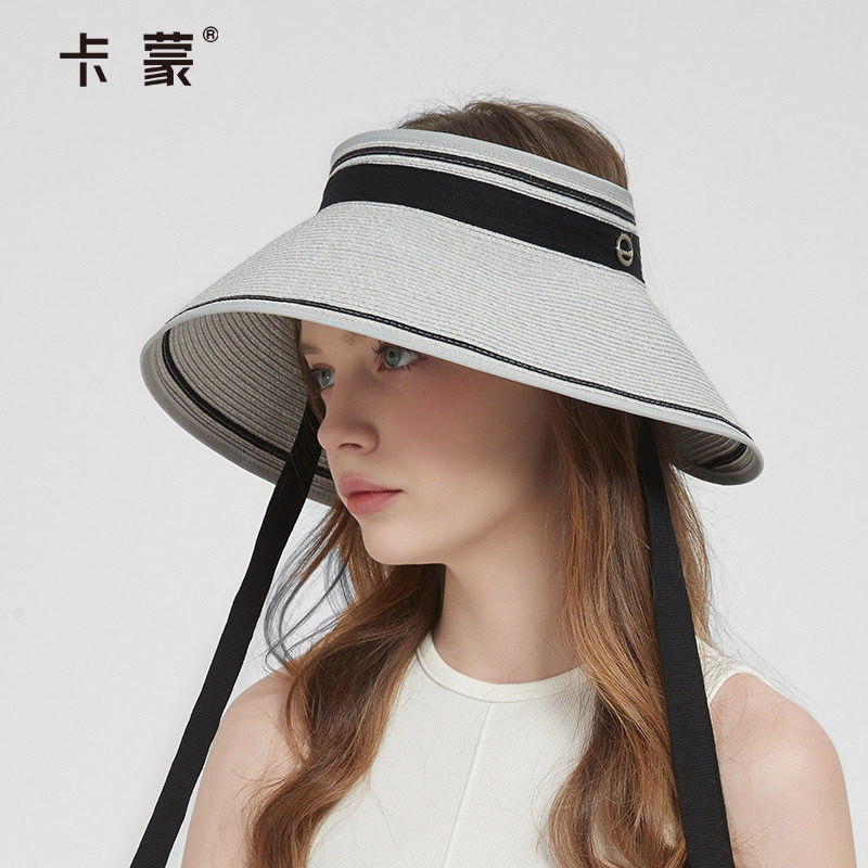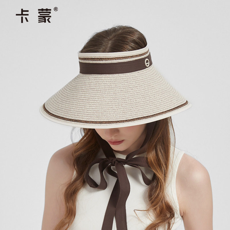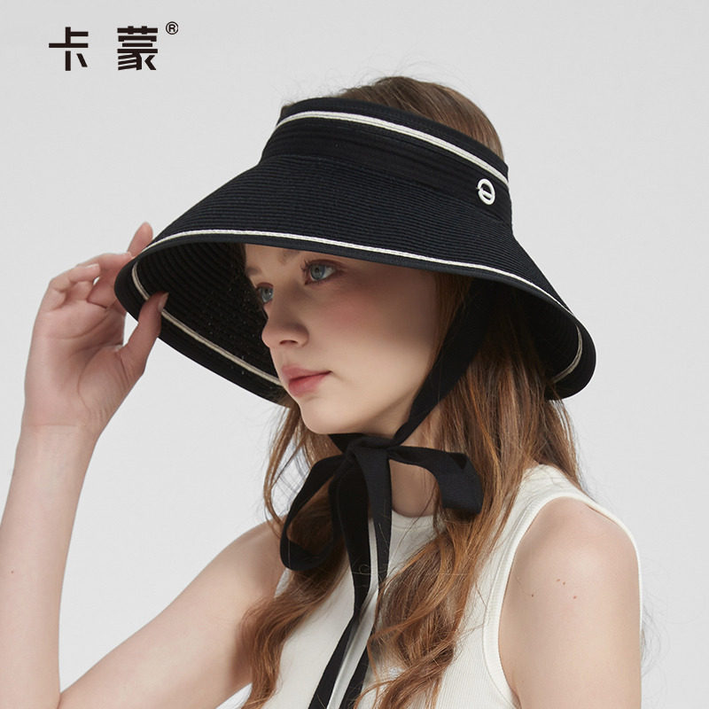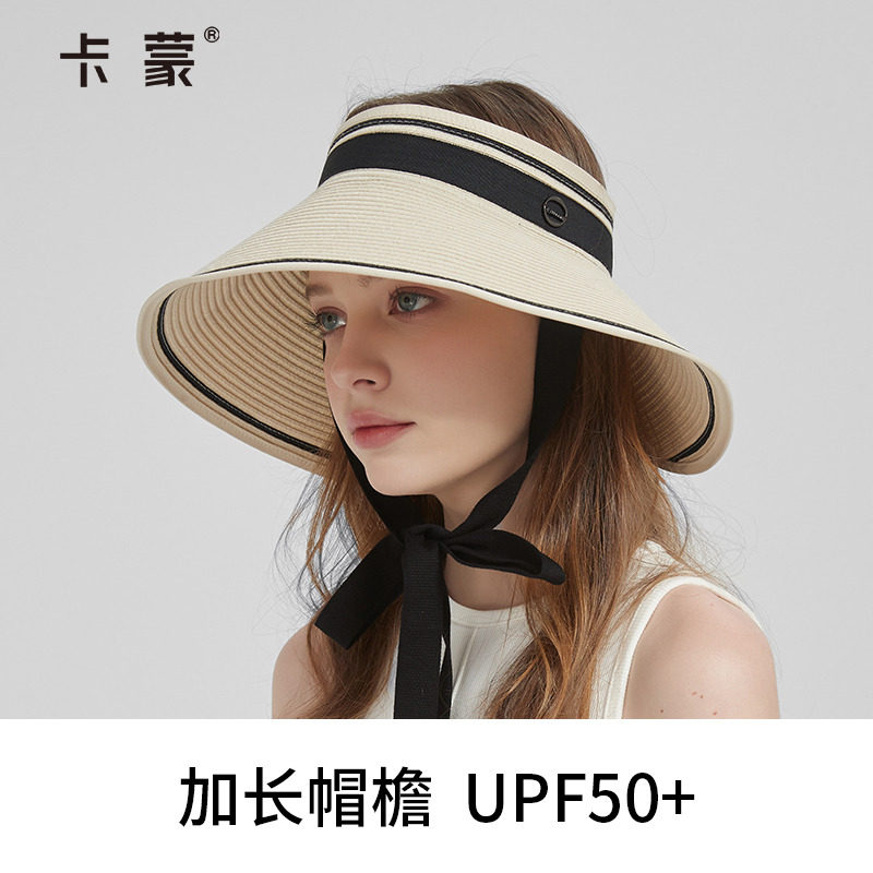 卡蒙女式遮阳防晒帽女新款防紫外线飘带渔夫帽大帽檐空顶蛋卷草帽