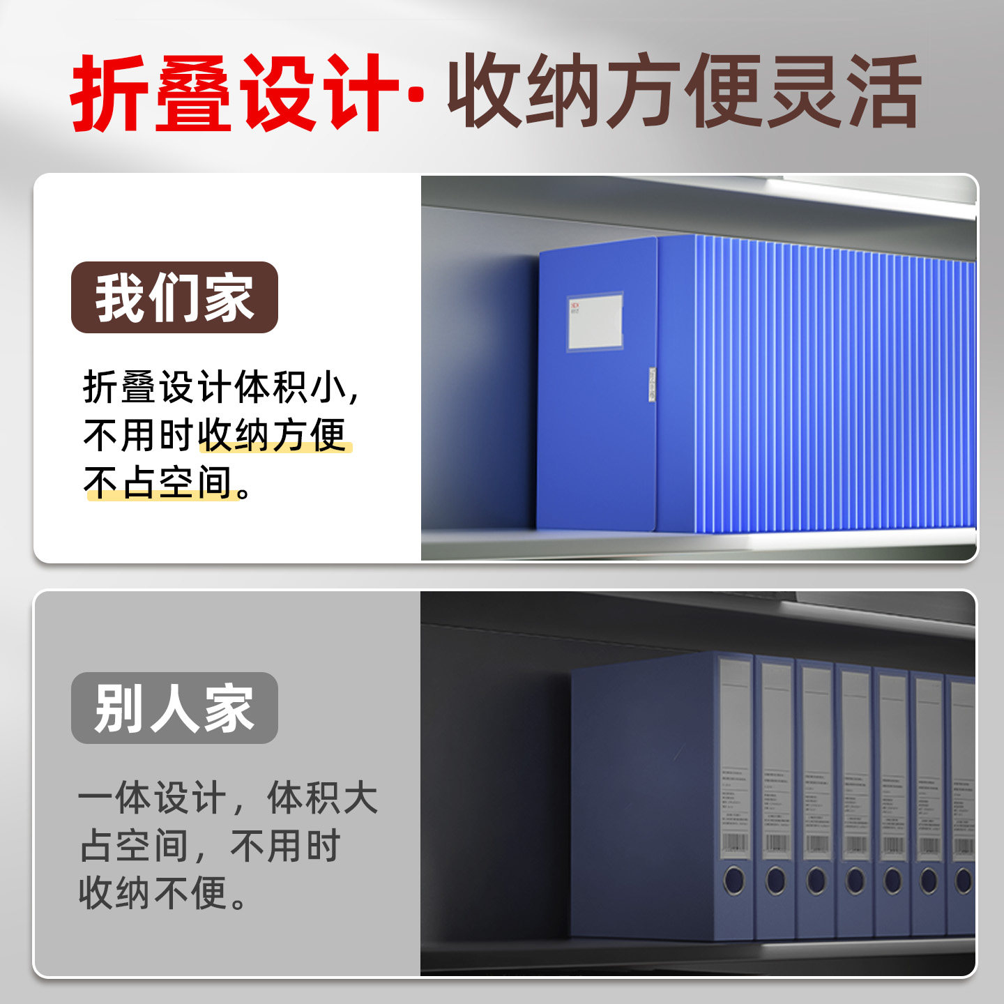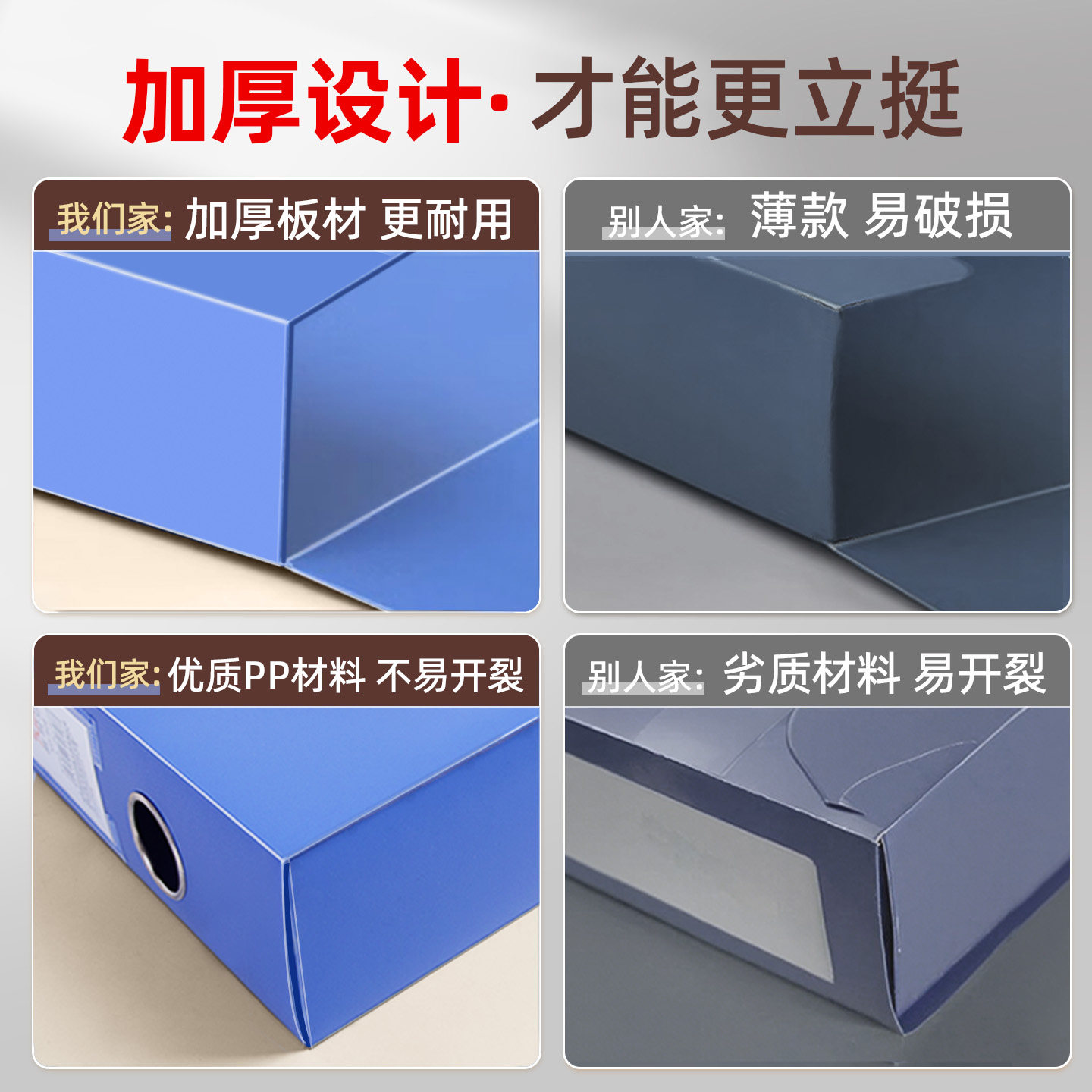 A4大容量办公用品折叠加厚档案盒资料盒文件夹55mm塑料蓝色收纳盒办公室档案文件财务会计凭证合同定制整理袋