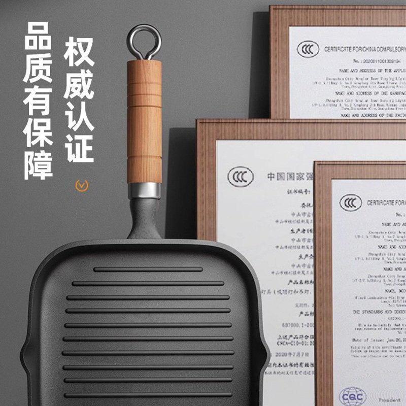 铸铁平底锅无涂层牛排小煎锅不沾锅煎牛排专用锅家用电磁炉早餐锅
