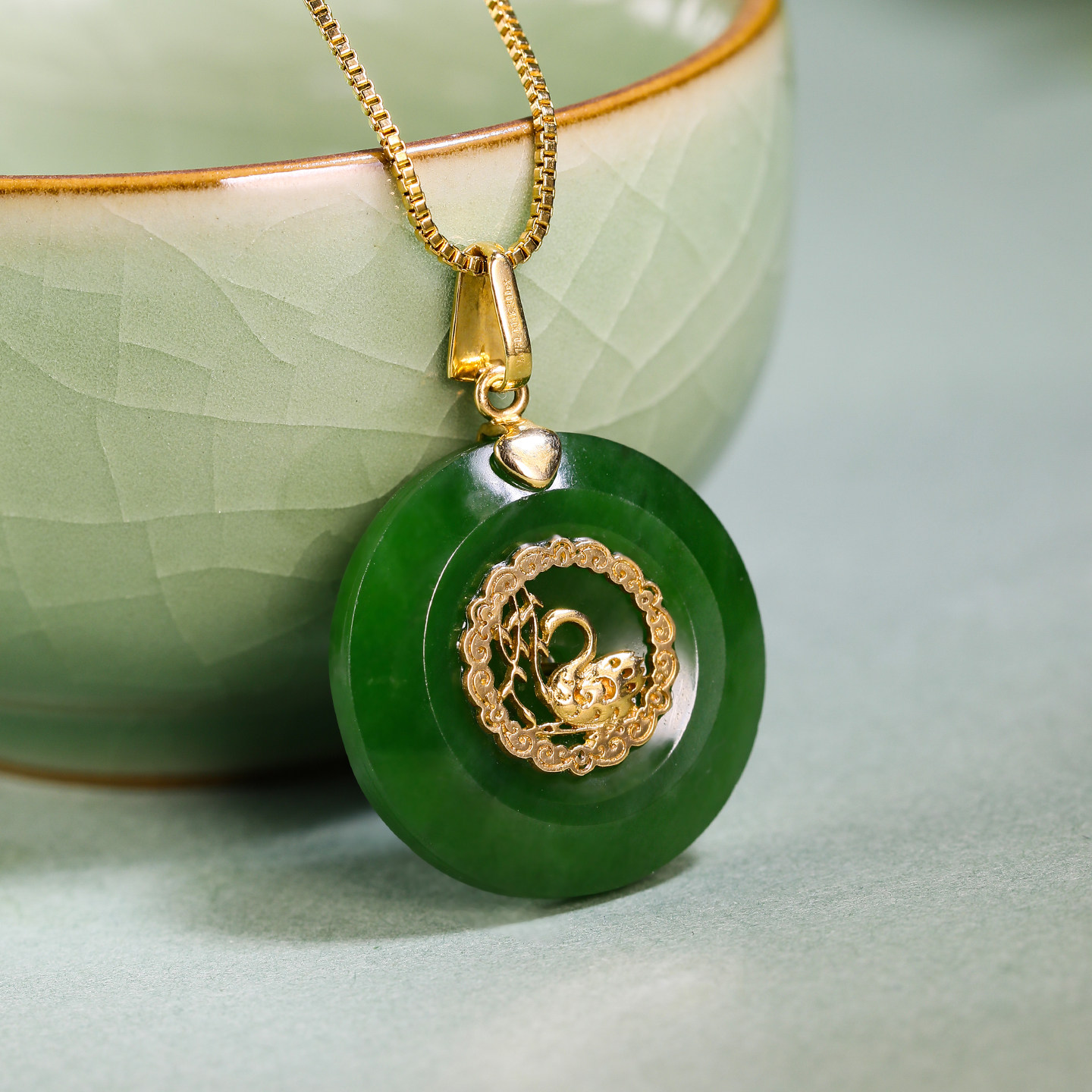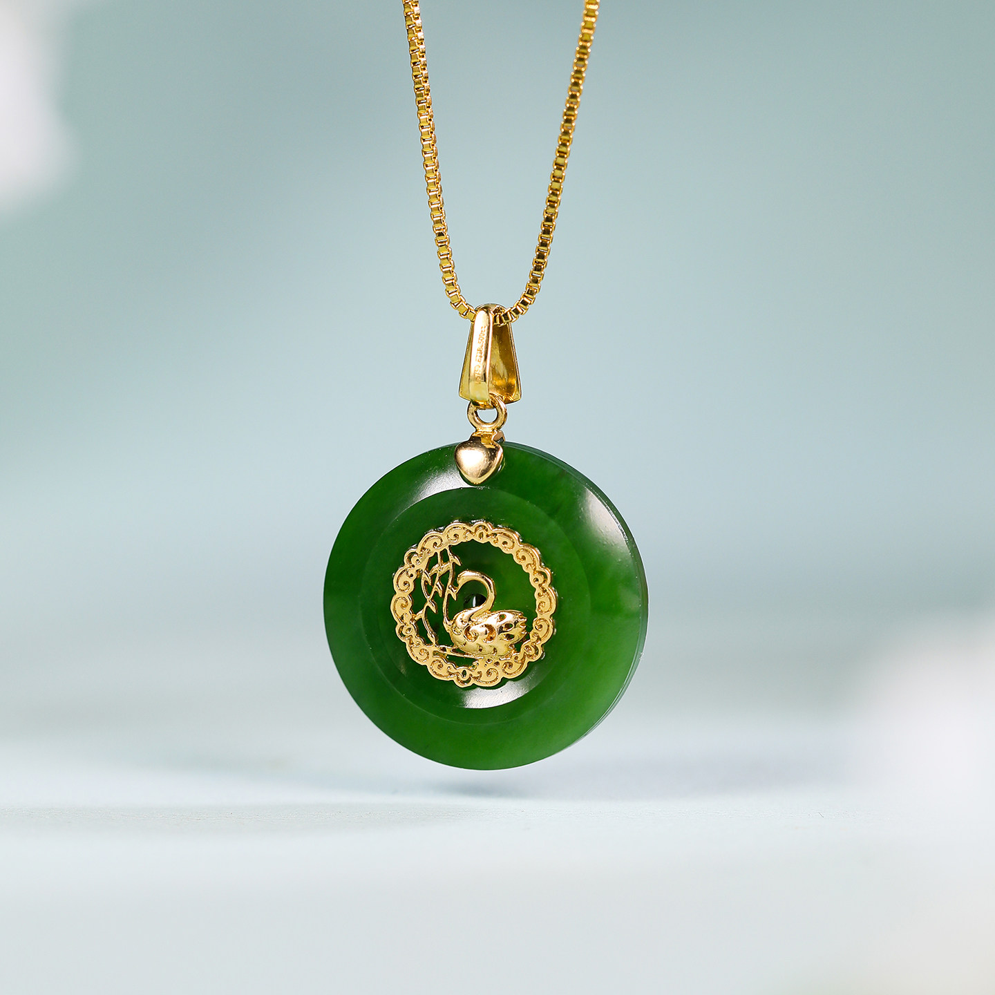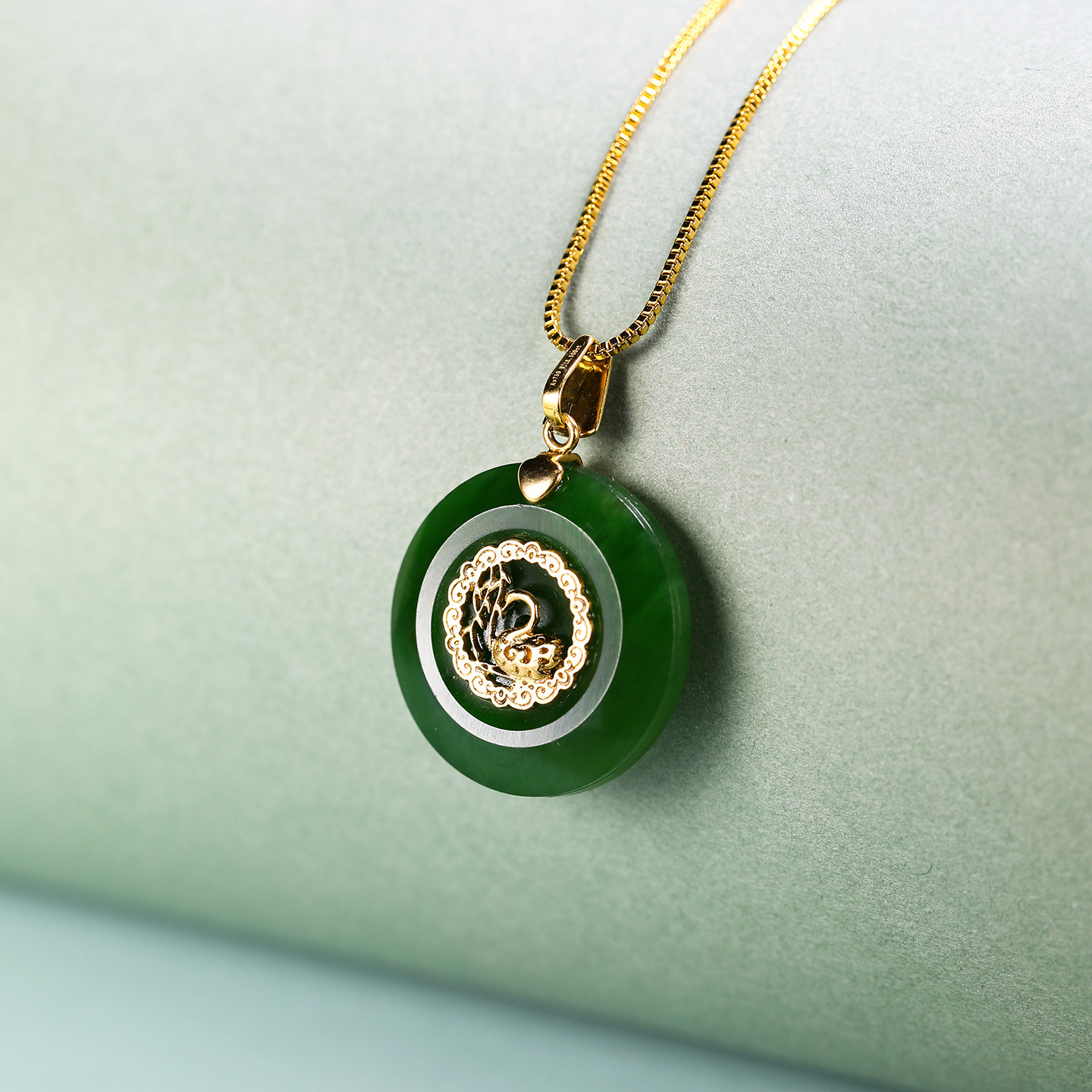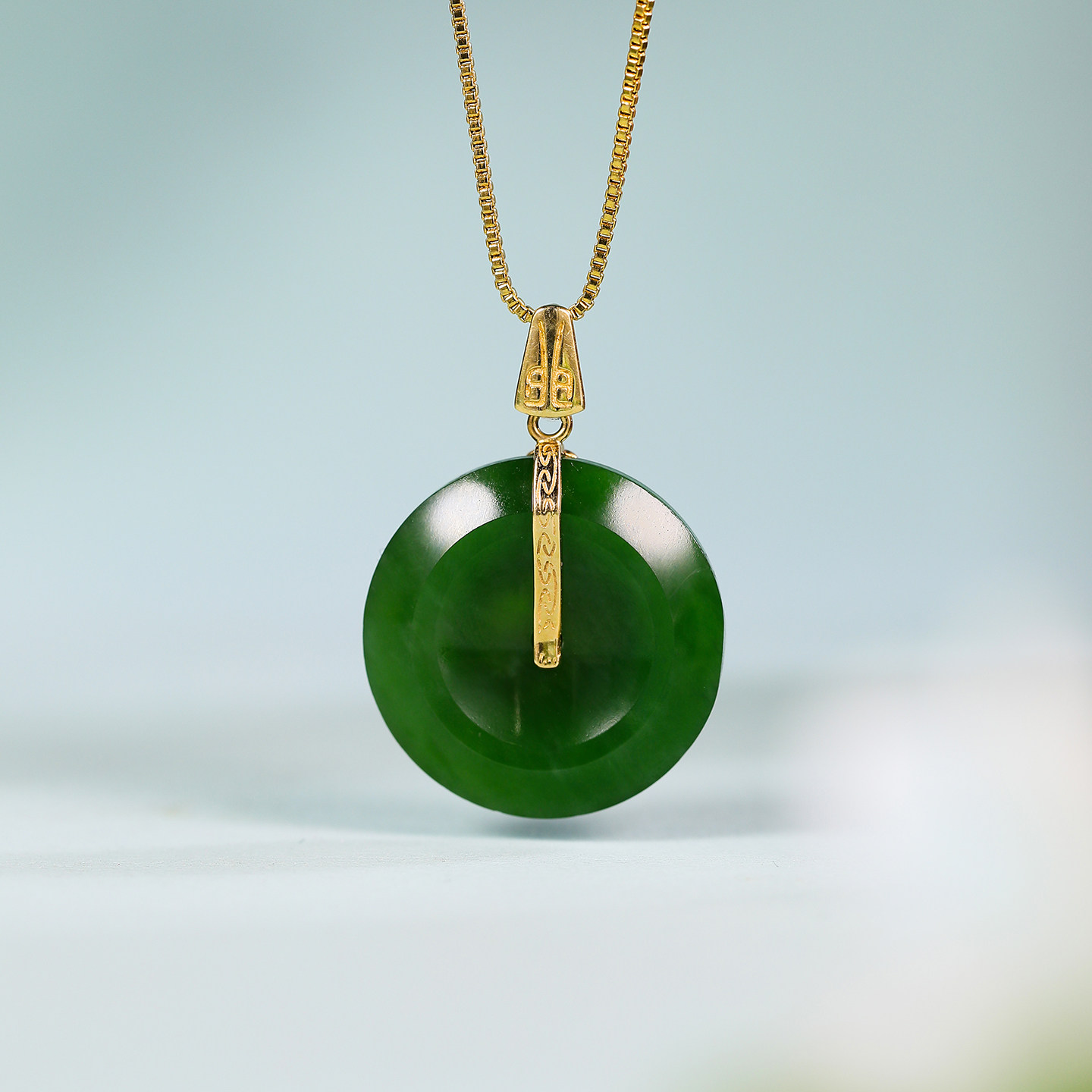 和合玉器和田玉18k金镶玉碧玉菠菜绿平安扣吊坠子玉石挂件项链女