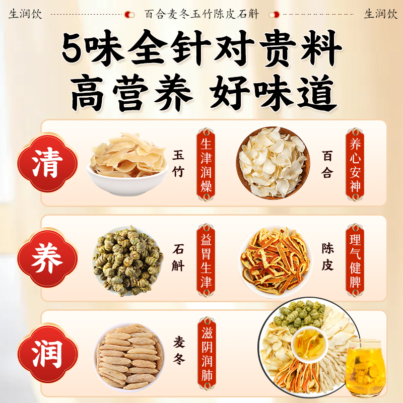 玉竹生津水液石斛生润饮中药材百合麦冬陈皮冲泡饮正品官方旗舰店