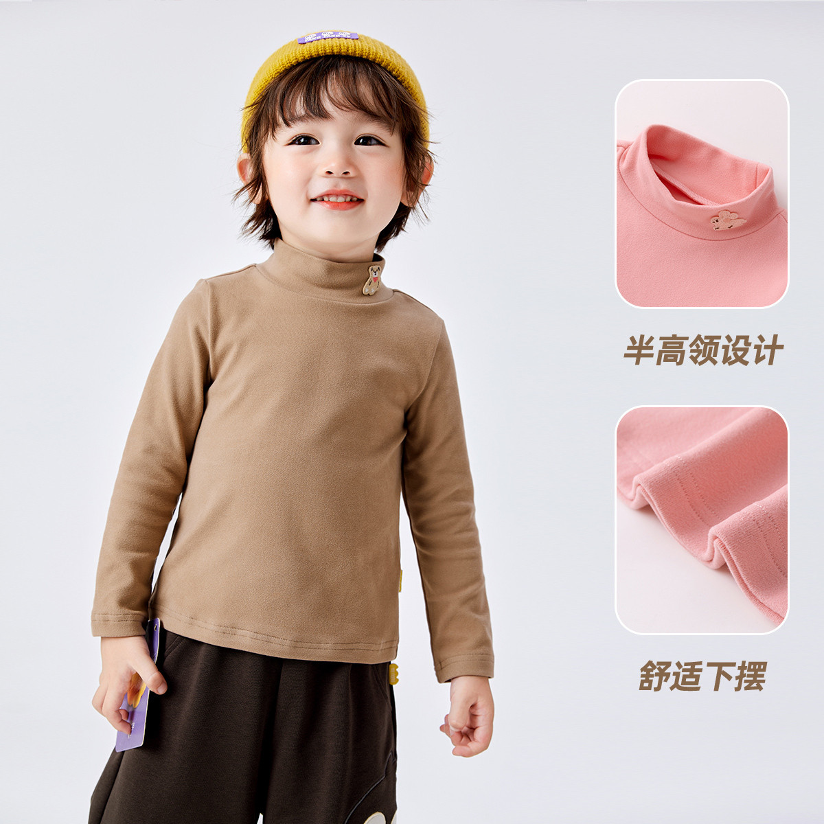 英氏儿童半高领打底衫秋冬款保暖男童女童秋衣中大童纯色长袖t恤