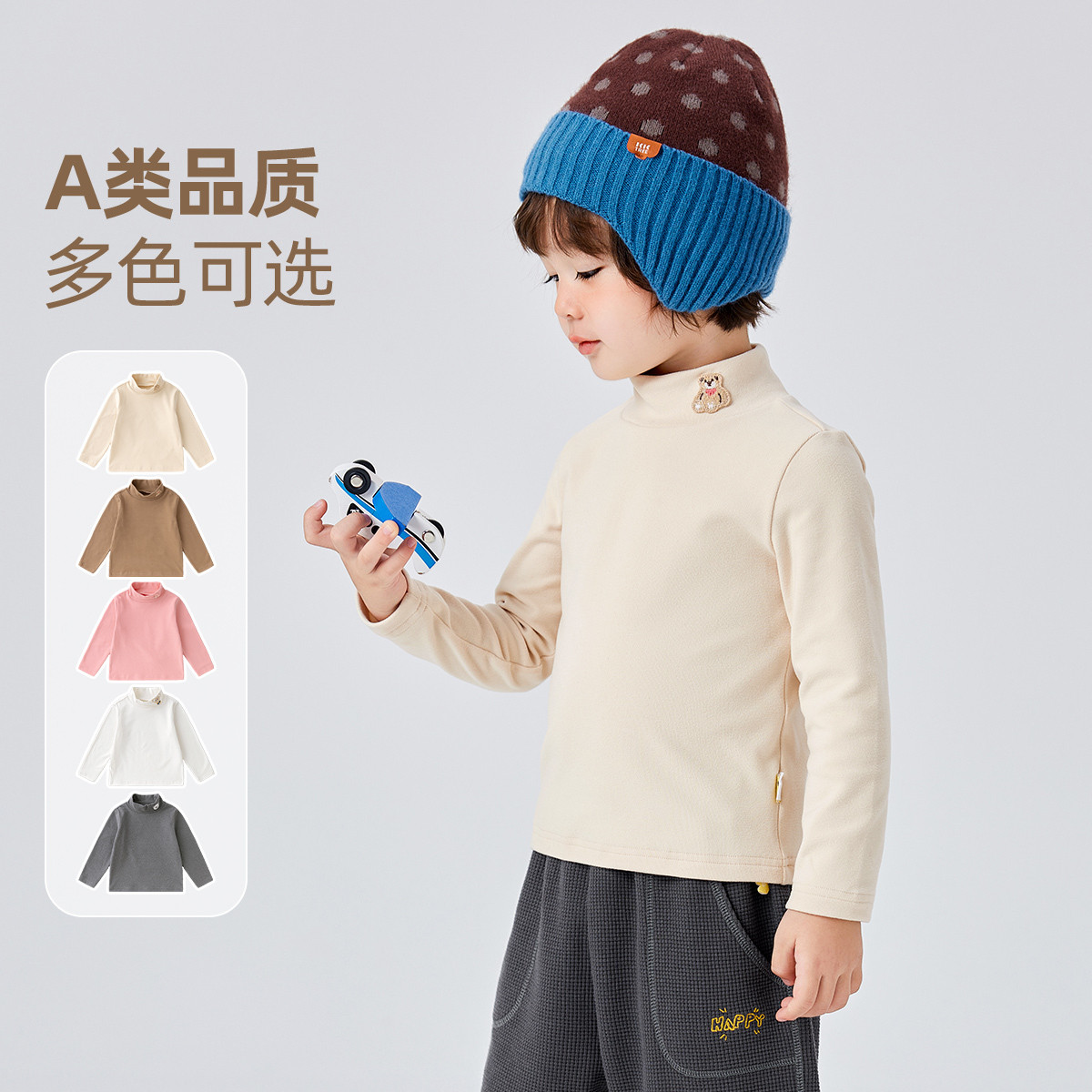 全棉母婴儿童打底衫女童A类100%纯棉半高领男宝宝长袖t恤秋冬加绒
