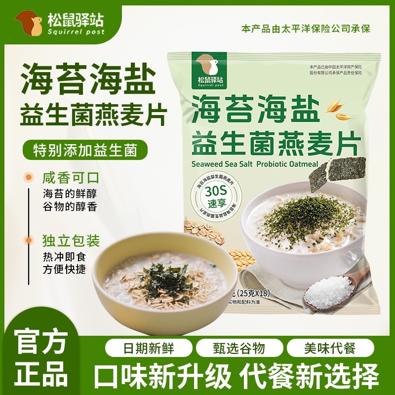 松鼠驿站海苔海盐益生菌燕麦片冲饮麦片学生营养代餐饱腹早餐冲泡